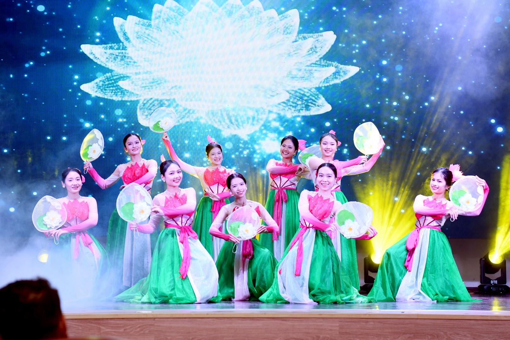 Đại diện sinh viên tặng hoa tri ân các thầy cô giáo, các quý vị đại biểu