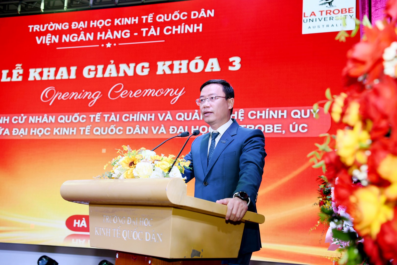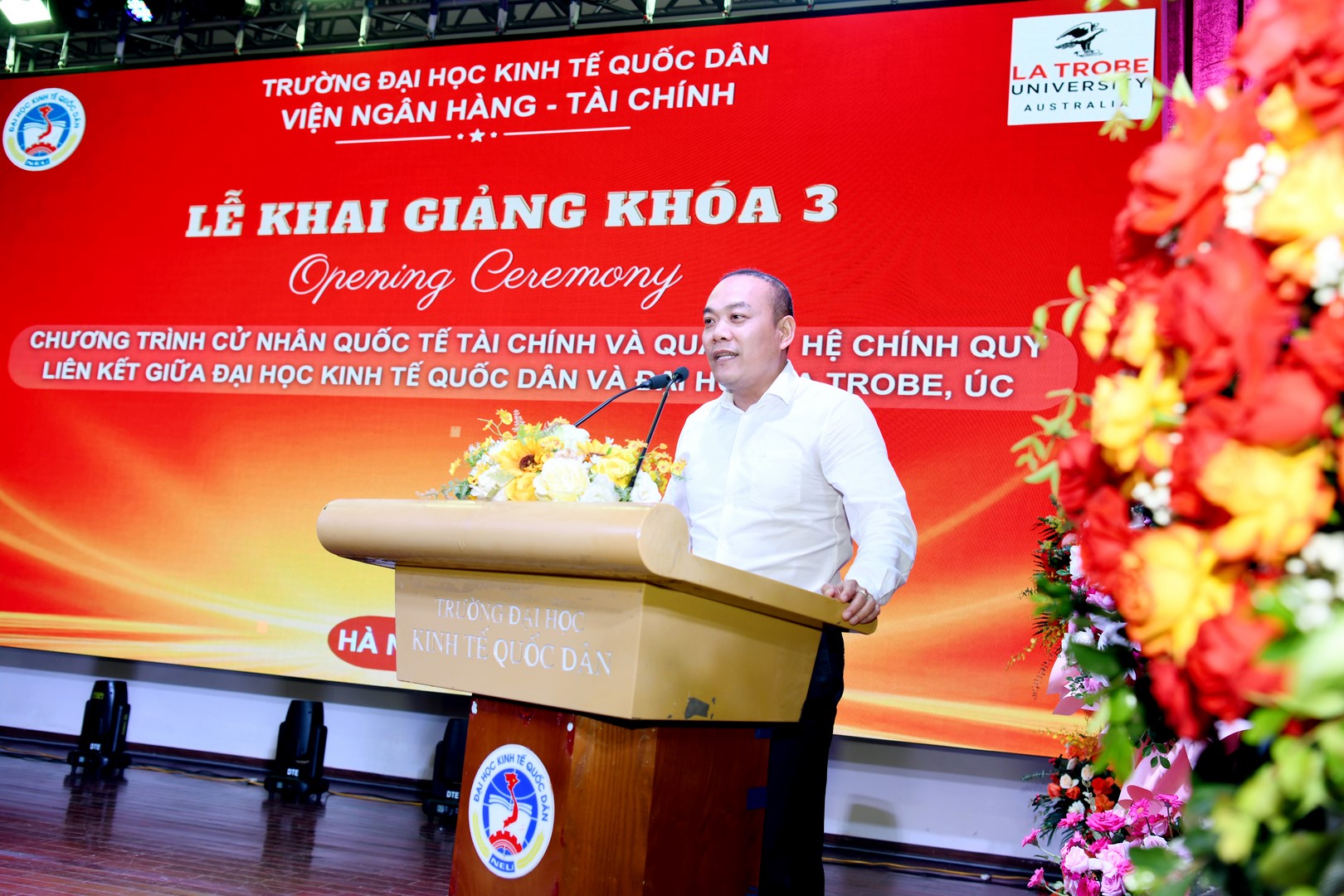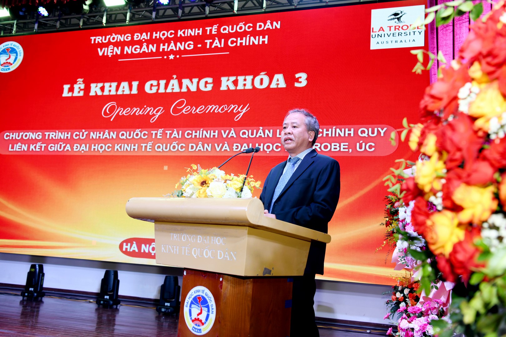 Phát biểu tại buổi lễ, PGS.TS Bùi Đức Thọ – Bí thư Đảng ủy, Chủ tịch Hội đồng trường cảm ơn các tân sinh viên đã tin tưởng và lựa chọn chương trình liên kết giữa Đại học Kinh tế Quốc dân và Đại học La Trobe, Úc.