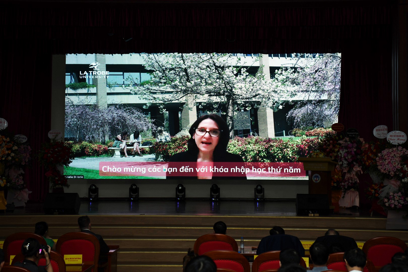 GS. Amalia Di Iorio – Phó Hiệu trưởng Phụ trách Liên kết đào tạo, ĐH La Trobe phát biểu chúc mừng qua video ngắn