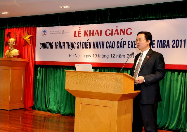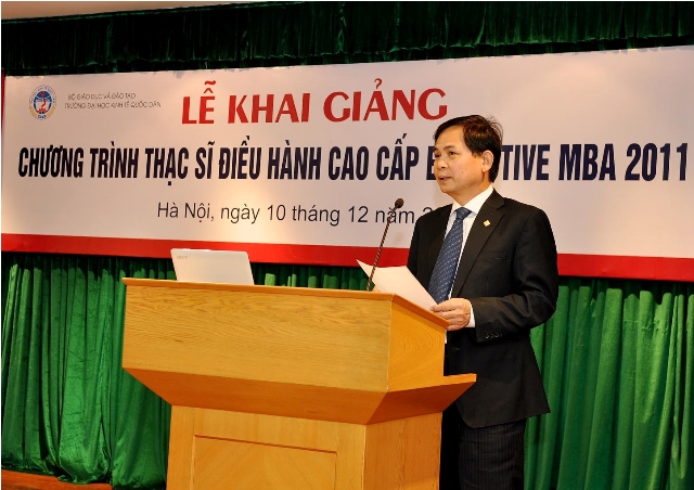Sáng 10/12/2011, tại Hội trường Gác 2, Nhà 10, trường Đại học Kinh tế Quốc dân đã long trọng tổ chức Lễ khai giảng Chương trình thạc sĩ Điều hành cao cấp khóa 1 (2011 – 2013). Đến dự buổi lễ có: GS.TS.Nguyễn Văn Nam – Bí thư Đảng uỷ – Hiệu trưởng , GS. TS Phạm Quang Trung, Phó Hiệu trưởng cùng các đồng chí đại diện lãnh đạo các đơn vị, đoàn thể, các đồng chí trong Ban Điều hành Chương trình, các giảng viên của Chương trình, các cán bộ quản lý của Viện Đào tạo Sau đại học và các tân học viên.