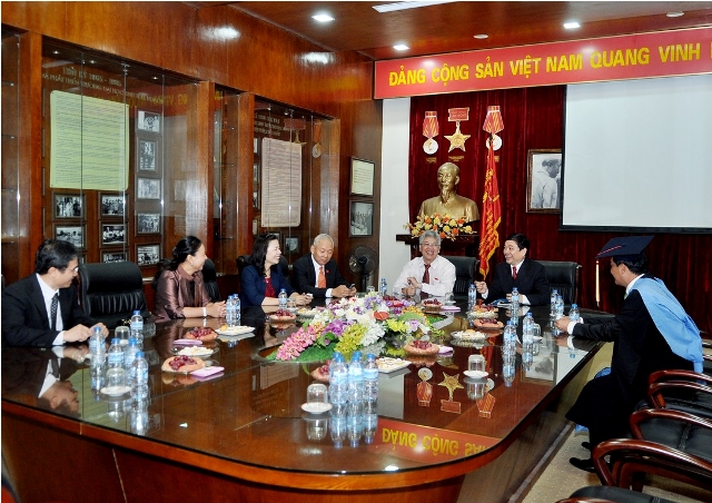 GS.TS.Trần Thọ Đạt – Hiệu trưởng nhà trường tiếp xã giao các đại biểu đến từ nước CHDCND Lào