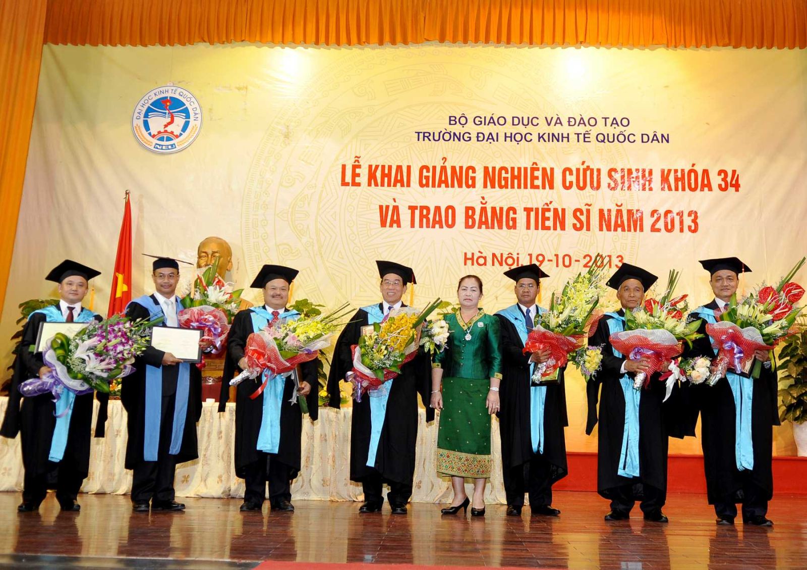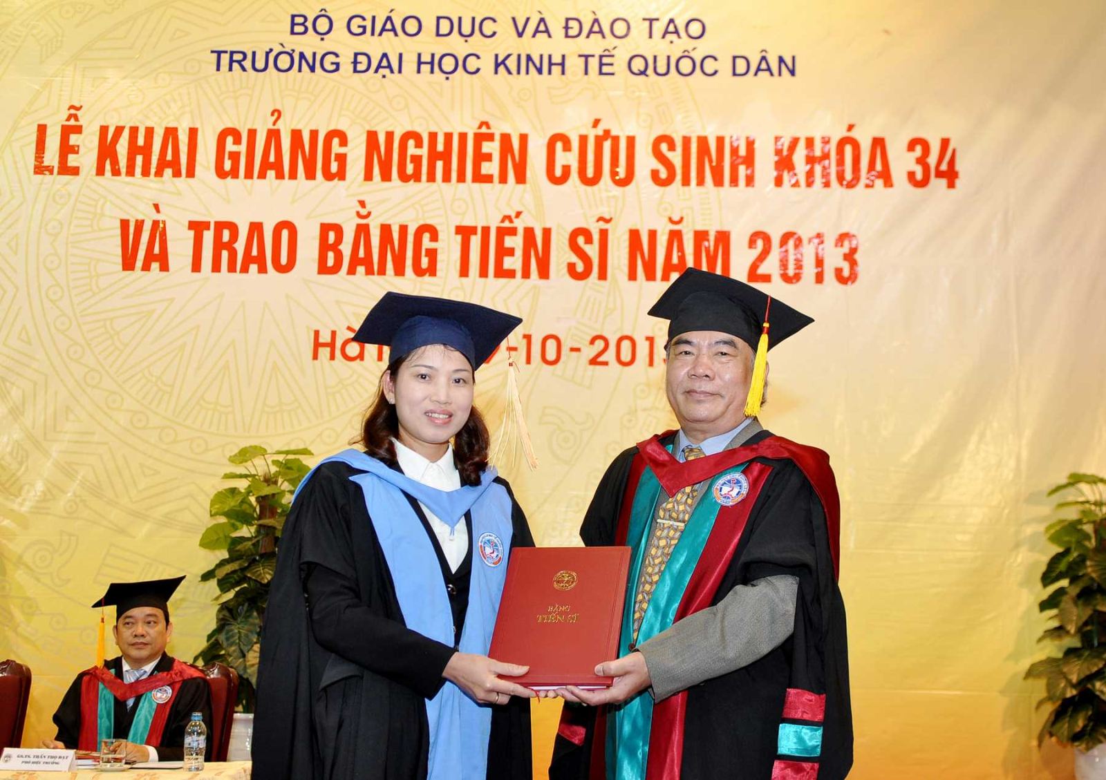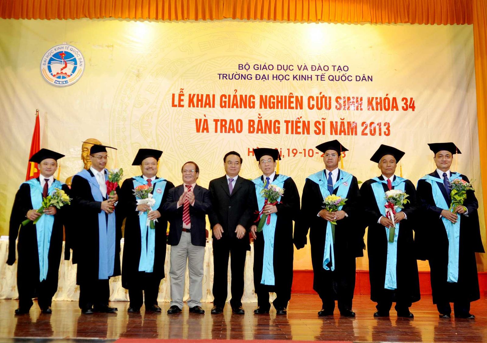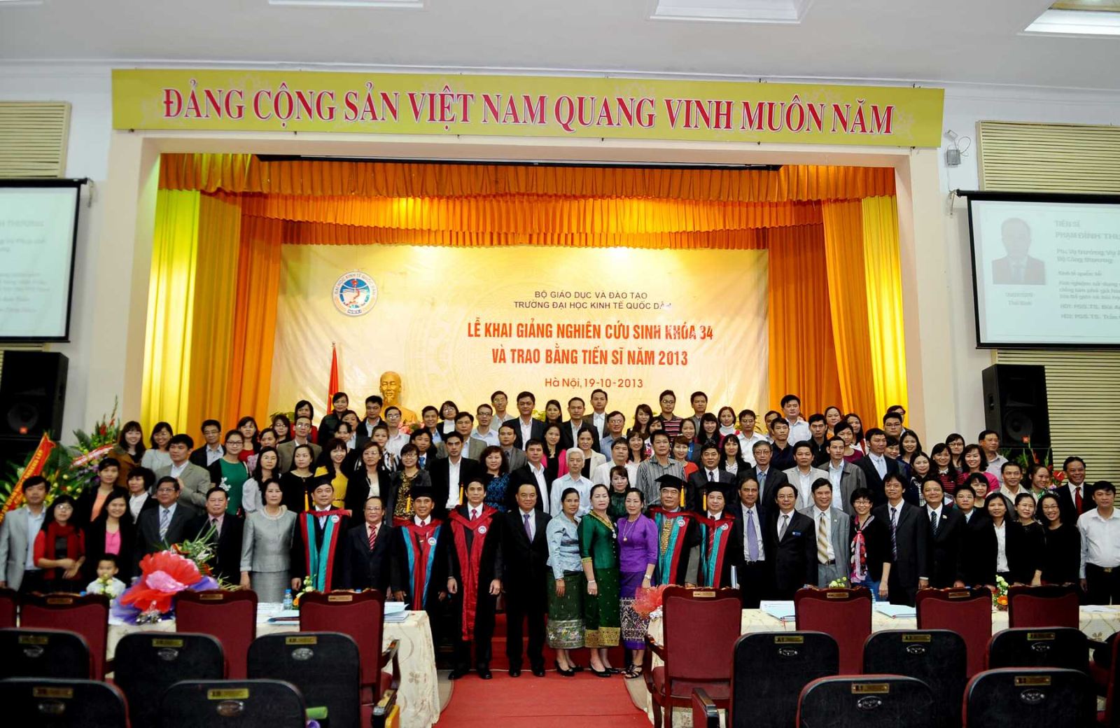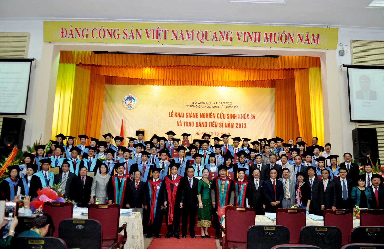 Trong không khí phấn khởi của cả nước cùng hướng tới kỷ niệm ngày Phụ nữ Việt Nam 20/10, ngày Nhà giáo Việt Nam 20/11, sáng 19/10/2013, tại Hội trường A, trường Đại học Kinh tế Quốc dân đã long trọng tổ chức Lễ khai giảng cho 133 nghiên cứu sinh khoá 34 và trao bằng tiến sĩ cho 67 tân Tiến sĩ năm 2013.