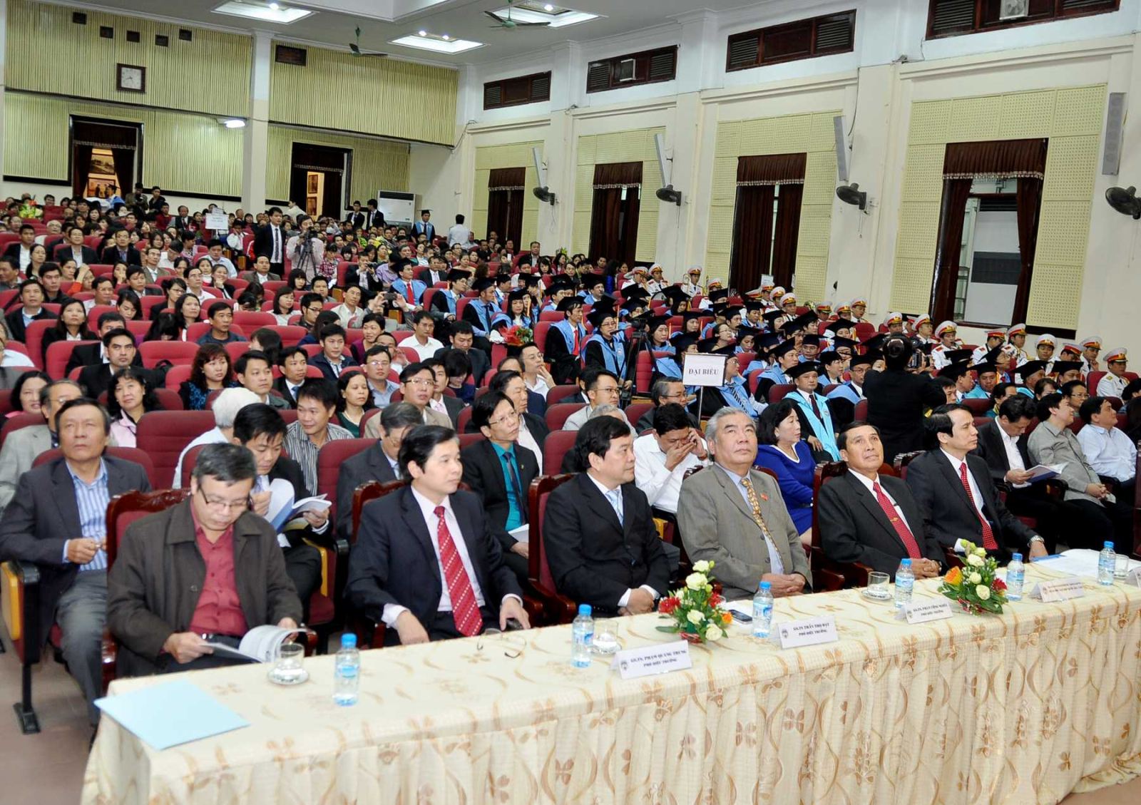 Trong lời phát biểu, Hiệu trưởng đã giành những lời tâm huyết đối với các tân Tiến sỹ “…Mục tiêu mà các bạn còn phải tiếp tục phấn đấu không mệt mỏi là những đóng góp của mình cho sự nghiệp khoa học của ngành, lĩnh vực chuyên môn mình đang theo đuổi; với những công trình nghiên cứu và những sản phẩm khoa học có giá trị…là tấm gương cho các thế hệ sinh viên, học viên cao học và NCS noi theo”; với các tân NCS, điều mong muốn là bằng quyết tâm và lòng say mê trong nghiên cứu, các tân NCS sẽ thực hiện đúng kế hoạch nghiên cứu đã đặt ra, trở thành các Tiến sĩ trong tương lai. Nhân dịp này, Hiệu trưởng đề nghị tập thể sư phạm nhà trường, trước tiên là Viện Sau Đại học, các GS, PGS, các giảng viên,vv…cần luôn tận tâm, tạo mọi điều kiện thuận lợi giúp đỡ các NCS trong quá trình học tập và nghiên cứu.