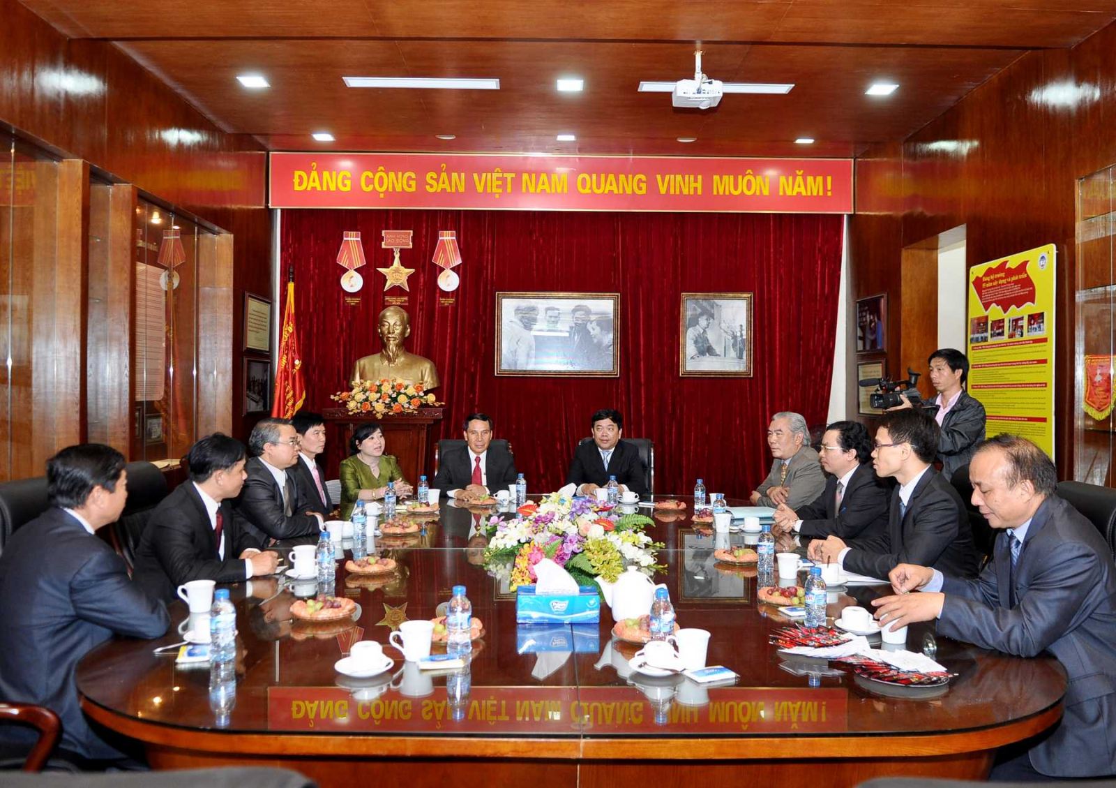 Đại diện lãnh đạo Nhà trường tiếp đoànđại biểu Đại học Quốc gia Lào