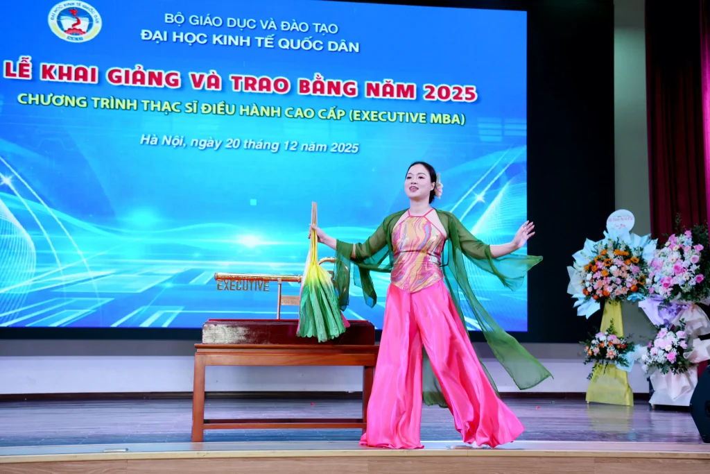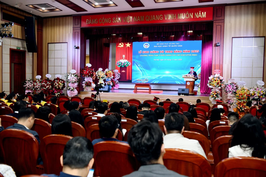 Chiều ngày 20/12/2025, Đại học Kinh tế Quốc dân đã tổ chức Lễ khai giảng khóa 15 và trao bằng thạc sĩ Chương trình Thạc sĩ điều hành cao cấp Executive MBA năm 2025 cho 176 tân học viên và 57 tân Thạc sĩ.
