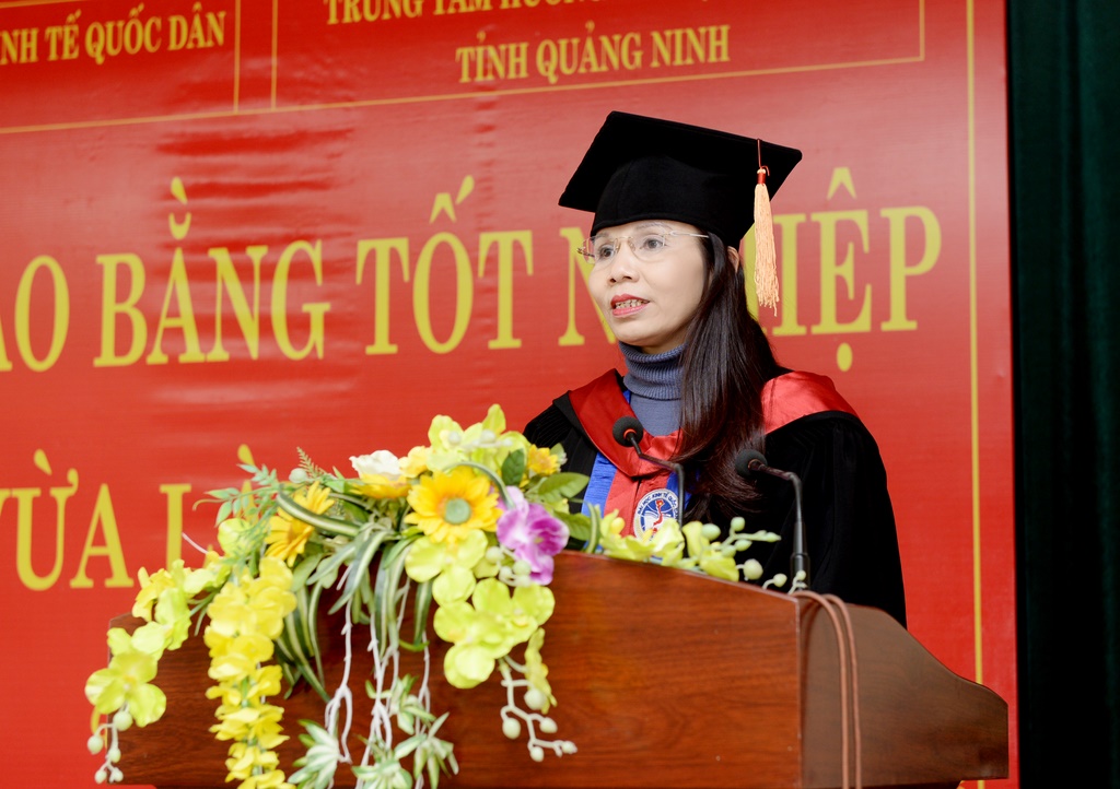 PGS.TS Trần Thị Vân Hoa – Phó Hiệu trưởng Trường ĐH KTQD phát biểu và chúc mừng các tân cử nhân tại buổi Lễ