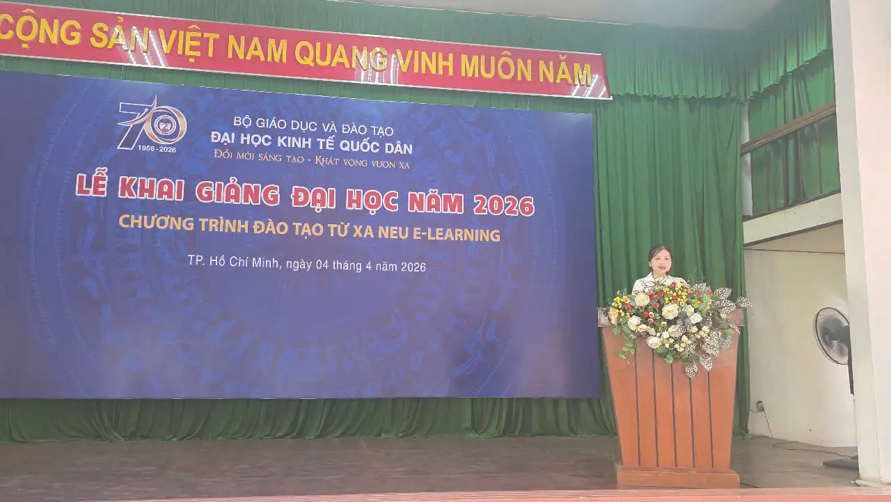 Ngày 04/4/2026, tại TP. Hồ Chí Minh, Đại học Kinh tế Quốc dân đã tổ chức Lễ khai giảng chương trình Đào tạo từ xa trình độ đại học đợt 2 năm 2026 khu vực miền Nam cho gần 200 tân sinh viên.