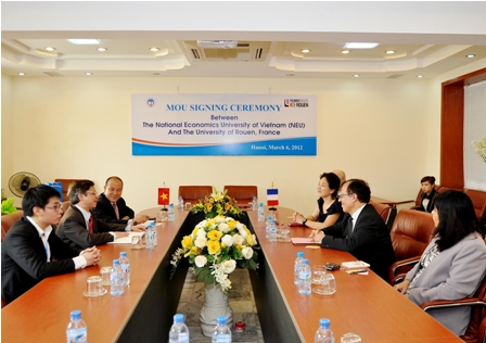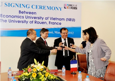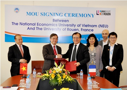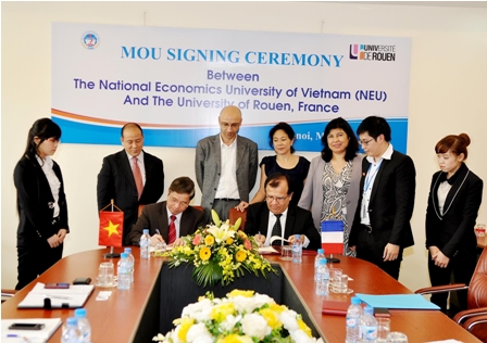 Chiều ngày 06/3/2012, tại phòng họp G2.N7, trường Đại học Kinh tế Quốc dân đã diễn ra Lễ ký Biên bản ghi nhớ giữa Đại học Kinh tế Quốc dân và Đại học Rouen, Pháp. Về phía đoàn đại biểu Đại học Rouen, tham dự lễ ký kết có GS.TS. Cafer Ozkul – Hiệu trưởng Đại học Rouen, PGS.TS Trần Thị Anh Đào – Nhà kinh tế và các vị đại biểu khác. Đón tiếp đoàn, về phía Đại học Kinh tế quốc dân có GS.TS. Phạm Quang Trung – Phó Hiệu trưởng, TS. Phạm Trương Hoàng và một số của Phòng HTQT.