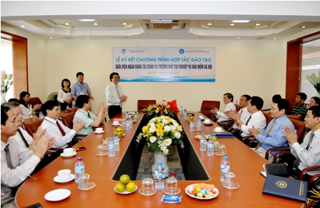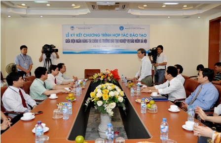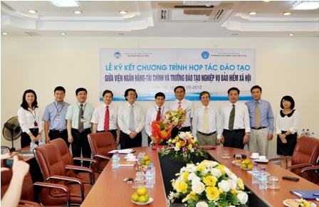 Chiều ngày 10/5/2012, tại G2 – Nhà 7 đã diễn ra Lễ ký kết chương trình đào tạo giữa Viện Ngân hàng Tài chính – Trường Đại học Kinh tế quốc dân và Trường đào tạo nghiệp vụ bảo hiểm xã hội.
