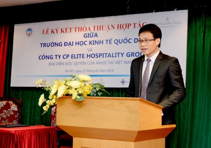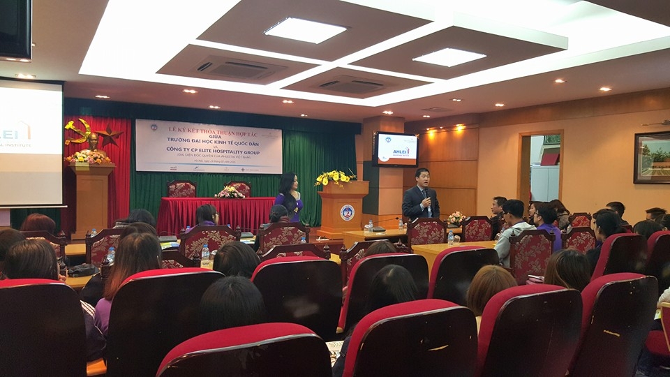 Ngày 23/2/2016, Trường Đại học Kinh tế Quốc dân và Viện Đào tạo Khách sạn và Lưu trú Hoa Kỳ (AHLEI) đã tiến hành ký kết hợp tác triển khai các chương trình đào tạo về khách sạn và du lịch tại Việt Nam thông qua Công ty Cổ phần Elite Hospitality Group (cơ quan đại diện độc quyền của AHLEI). Trên cơ sở thỏa thuận hợp tác này, sinh viên của Đại học Kinh tế Quốc dân sẽ được tiếp cận với những chương trình đào tạo chuyên nghiệp được thừa nhận rộng rải bởi các doanh nghiệp khách sạn quốc tế đồng thời Khoa Du lịch và Khách sạn có cơ hội tiếp nhận công nghệ đào tạo tiên tiến vốn được thực hiện ở các trường đại học đào tạo về khách sạn nổi tiếng trên thế giới như Cornell University, Boston University, California State University… (https://www.ahlei.org/Partners/US-and-Canadian-Institutions/). Đây là một trong những bước đi chiến lược của Trường Đại học Kinh tế Quốc dân (cơ sở đào tạo đầu tiên tại Việt Nam cung cấp chương trình cử nhân, cao học và tiến sĩ về kinh tế và quản trị du lịch) nhằm nâng cao chất lượng nguồn nhân lực đặc biệt là nhân lực quản lý cấp trung và cấp cao cho ngành du lịch Việt Nam.