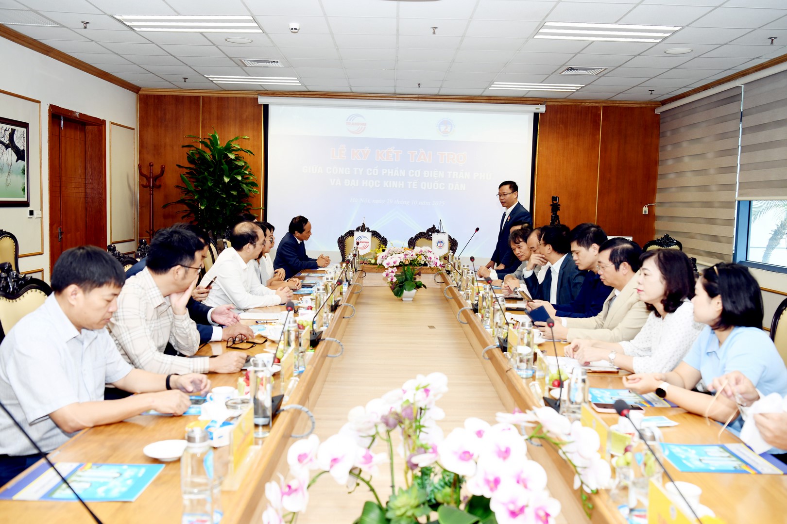 Lễ ký kết tài trợ giữa Công ty Cổ phần Cơ điện Trần Phú và Đại học Kinh tế Quốc dân là minh chứng rõ nét cho tinh thần hợp tác bền chặt giữa Nhà trường và doanh nghiệp, cùng chung mục tiêu kết nối tri thức với thực tiễn, thúc đẩy đổi mới sáng tạo và đồng hành vì sự phát triển bền vững của đất nước.