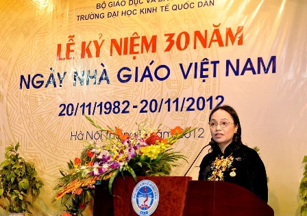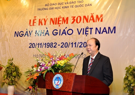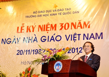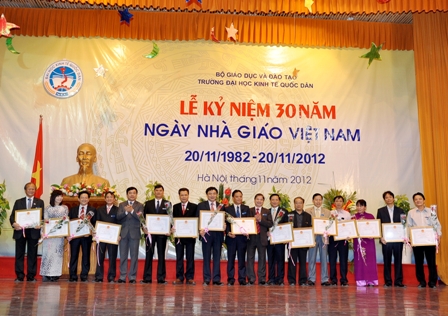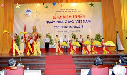 Hàng năm, khi tháng 11 đến là những ngày toàn xã hội dành nhiều tình cảm và tổ chức những hoạt động thiết thực để tôn vinh những nhà giáo, những người hoạt động trong lĩnh vực giáo dục; truyền thống tốt đẹp ấy có từ ngàn xưa và nay vẫn đang tiếp tục được phát huy, tiếp nối từ thế hệ này sang thế hệ khác; và hoà chung trong không khí đó, chiều 19/11/2012, tại Hội trường A, trường Đại học kinh tế Quốc dân đã long trọng tổ chức Lễ kỷ niệm 30 năm ngày nhà giáo Việt Nam 20/11.