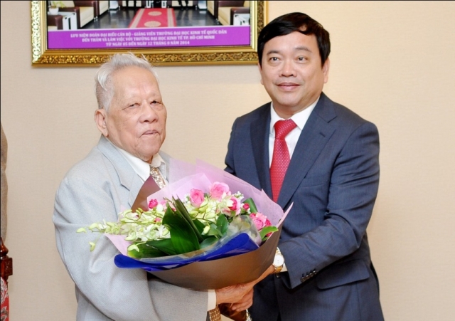 PGS.TS.Phạm Mạnh Hùng – Thứ trưởng Bộ Giáo dục và Đào tạo, nguyên Bí thư Đảng ủy, Hiệu trưởng Trường ĐHKTQD trao Bằng khen của Bộ trưởng Bộ GD & ĐT cho tập thể Khoa Lý luận Chính trị