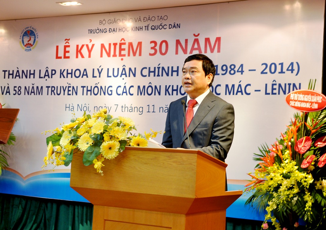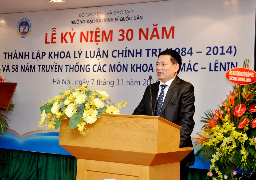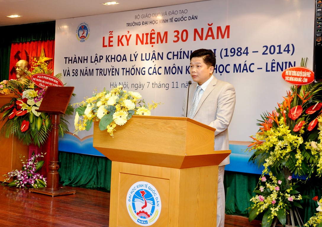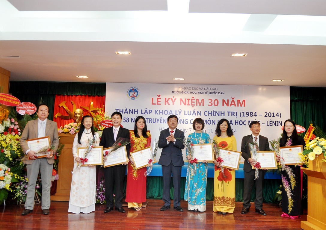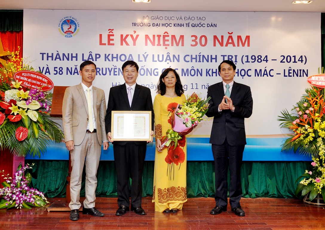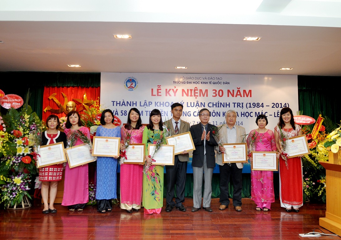 Hòa chung trong không khí cả nước cùng hướng về ngày Nhà giáo Việt Nam 20/11, ngày 07 tháng 11 năm 2014, tại G2.10, Khoa Lý luận Chính trị trường Đại học Kinh tế Quốc dân đã long trọng tổ chức Lễ kỷ niệm 30 năm thành lập Khoa Lý luận chính trị và 58 năm truyền thống các môn Khoa học Mác – Lênin.