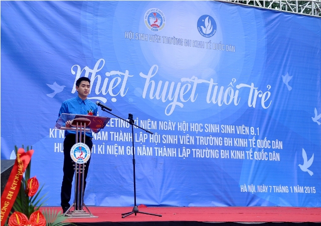 Khai mạc buổi lễ, Đ/c Lâm Tùng – Chủ tịch Hội Sinh viên đã có bài diễn văn ôn lại lịch sử của Ngày truyền thống Học sinh Sinh viên Việt Nam với sự hi sinh quả cảm của anh hùng Trần Văn Ơn. Trong suốt 30 năm hình thành và phát triển của Hội Sinh viên nhà trường, tinh thần và ý chí ấy đã được các thế hệ sinh viên nhà trường gìn giữ và phát huy trong cả học tập và hoạt động phong trào, góp phần xây dựng hình ảnh sinh viên đại học Kinh tế Quốc dân với: Bản lĩnh vững vàng, thanh lịch văn minh, tri thức phong phú, sức khỏe dồi dào, kỹ năng thành thạo.