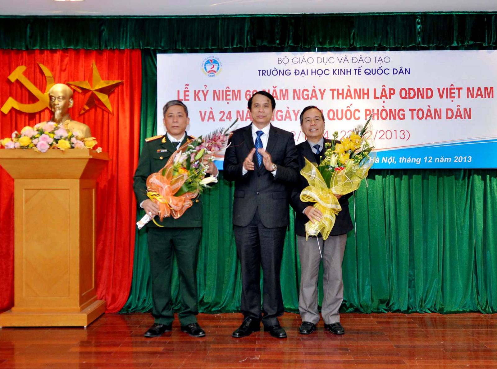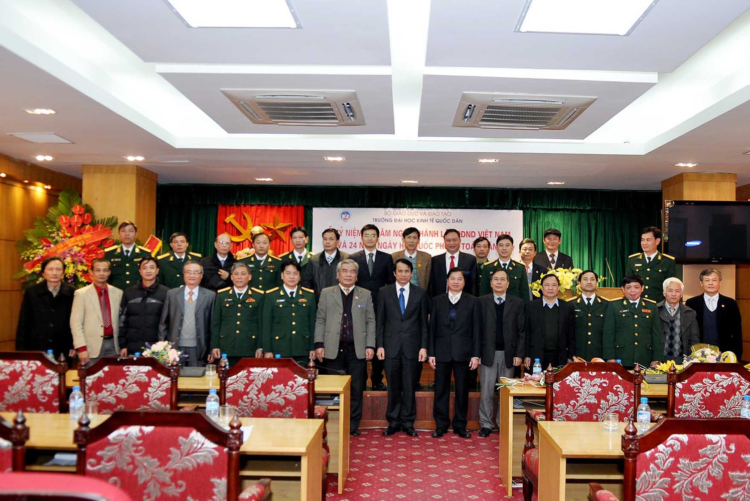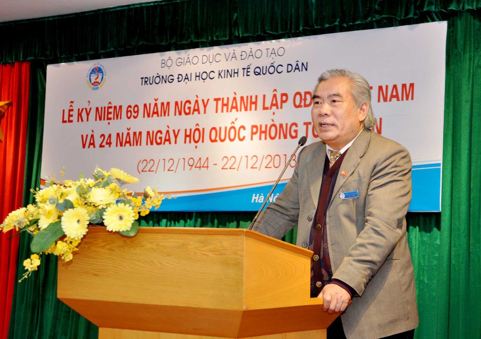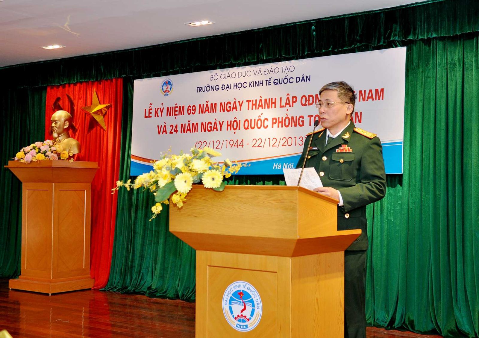 Hưởng ứng không khí cả nước cùng hướng về kỷ niệm 69 năm ngày thành lập Quân đội nhân dân Việt Nam và 24 năm ngày Hội quốc phòng toàn dân; chiều ngày 19 tháng 12 năm 2013, tại G2.N10, trường Đại học Kinh tế Quốc dân đã long trọng tổ chức Lễ mít tinh kỷ niệm 69 năm ngày thành lập Quân đội nhân dân Việt Nam và 24 năm ngày Hội quốc phòng toàn dân. Đến dự buổi lễ, về phía đại biểu ngoài trường có Đại tá, PGS.TS.Trần Đình Hướng – Phó Giám đốc Học Viện hậu cần. Về phía trường ĐHKTQD, có sự quan tâm đặc biệt của PGS.TS Phạm Mạnh Hùng – Thứ trưởng Bộ GD và ĐT, kiêm Bí thư Đảng ủy, Hiệu trưởng; GS.TS Phan Công Nghĩa- Phó Hiệu trưởng; GS.TS Phạm Quang Trung- Phó Hiệu trưởng: GS.TS. Hoàng Ngọc Việt – Chủ tịch Hội CCB trường, đại diện lãnh đạo các đơn vị, đông đảo các cựu chiến binh là cựu quân nhân, cựu TNXP đã và đang công tác tại trường, các sỹ quan Khoa GDQP.