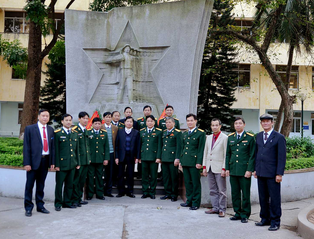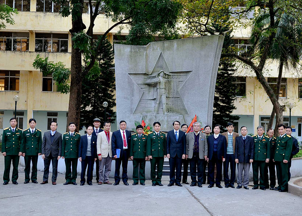 PGS.TS.Phạm Mạnh Hùng cùng các đồng chí lãnh đạo, các sỹ quân Khoa GDQP dâng hoa tại Đài kỷ niệm
