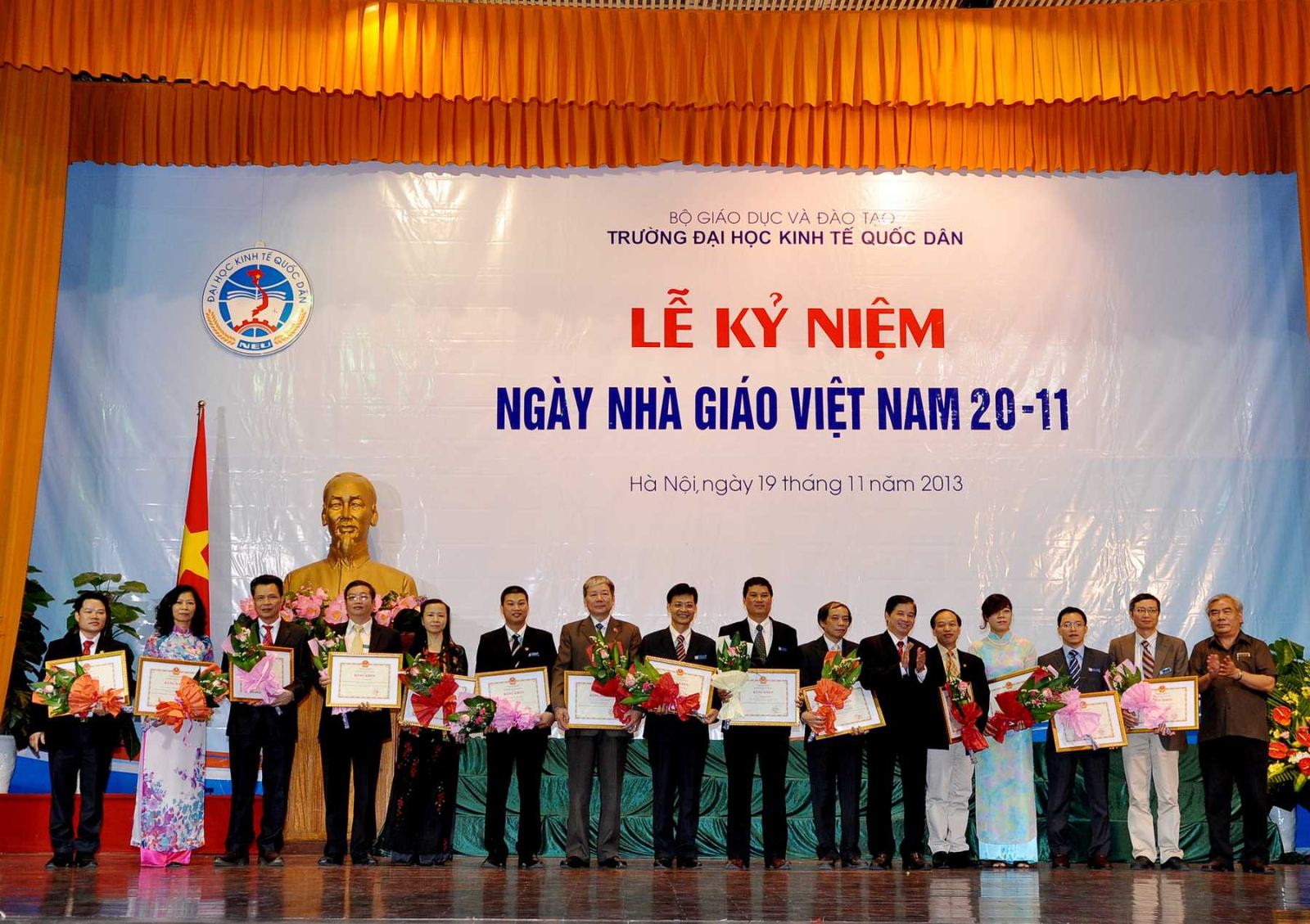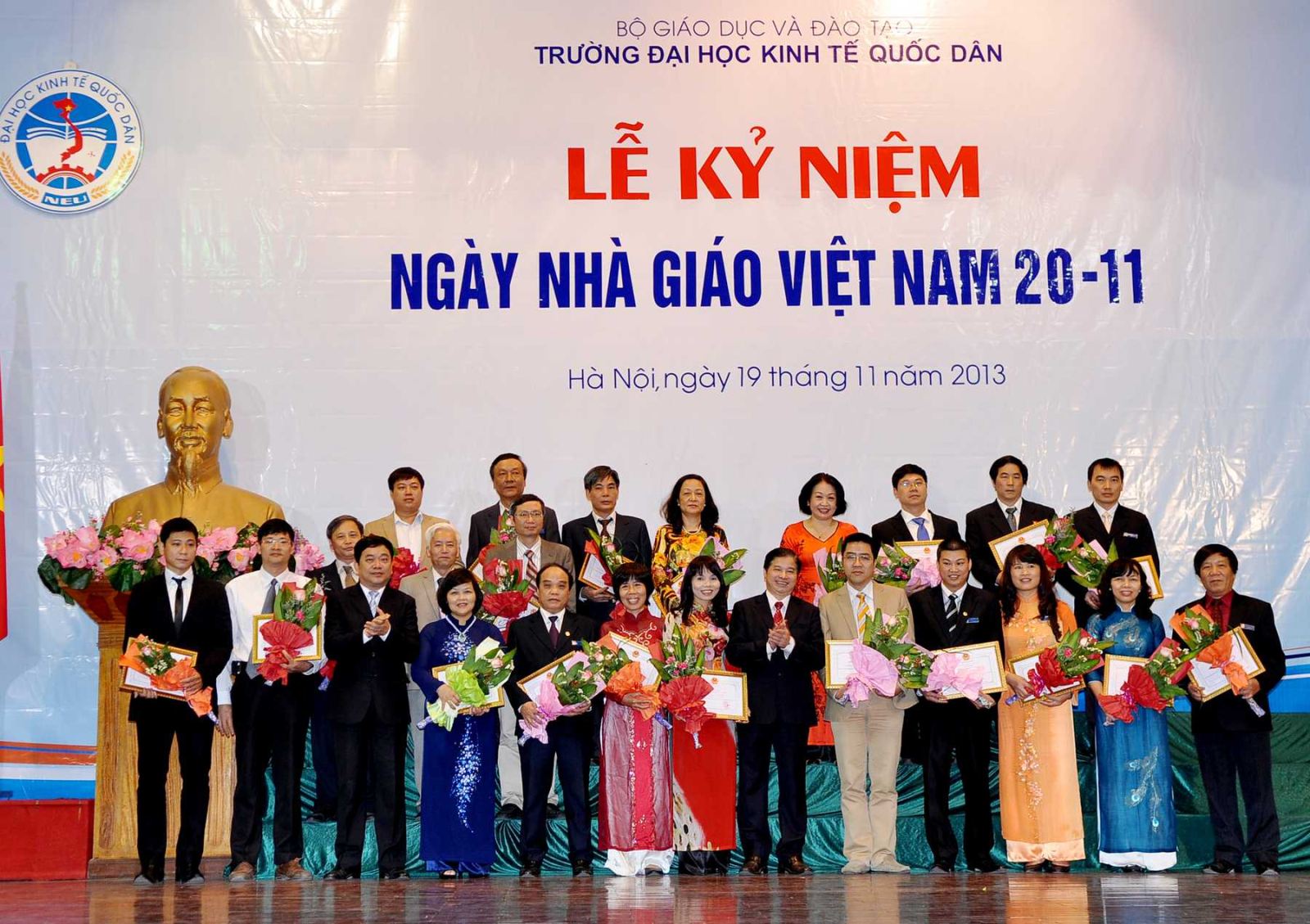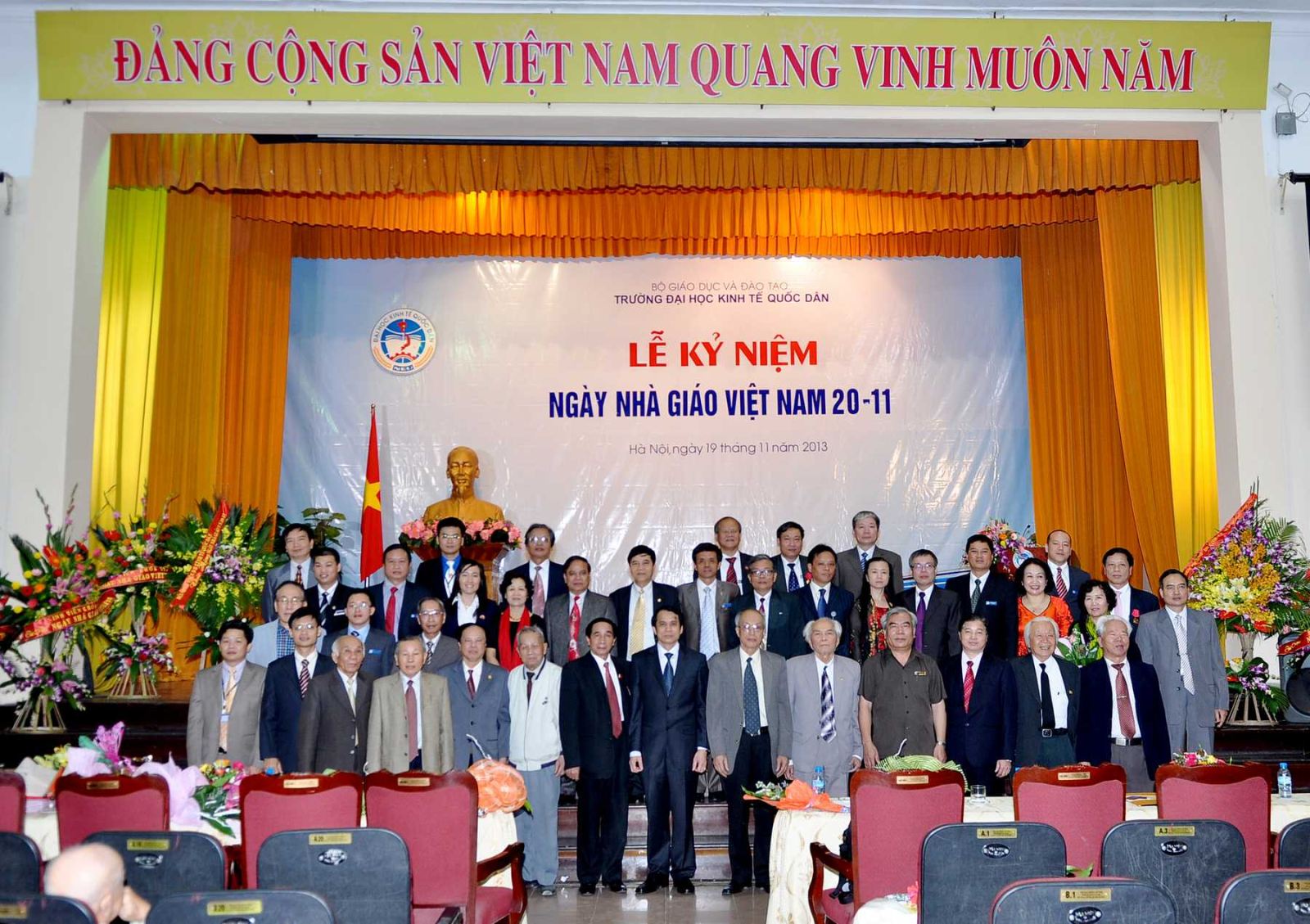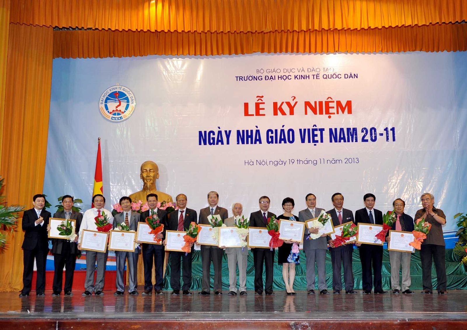 Hàng năm, khi tháng 11 đến là những ngày toàn xã hội dành nhiều tình cảm và tổ chức những hoạt động thiết thực để tôn vinh nhà giáo, những người hoạt động trong lĩnh vực giáo dục; truyền thống tốt đẹp ấy có từ ngàn xưa và nay vẫn đang tiếp tục được phát huy, tiếp nối từ thế hệ này sang thế hệ khác; và hoà chung trong không khí đó, sáng 19/11/2013, tại Hội trường A, trường Đại học kinh tế Quốc dân đã long trọng tổ chức Lễ kỷ niệm ngày nhà giáo Việt Nam 20/11.