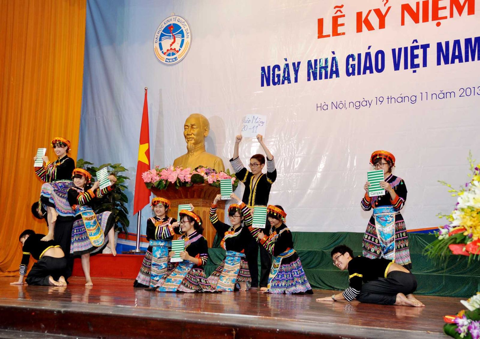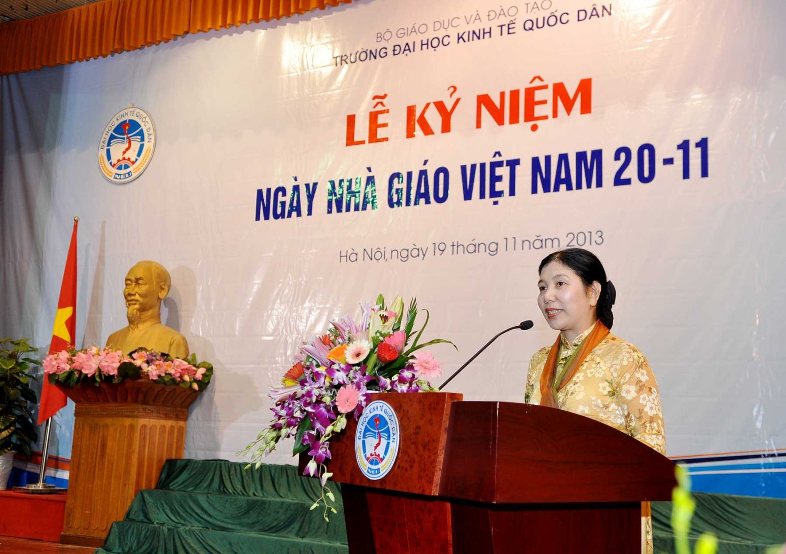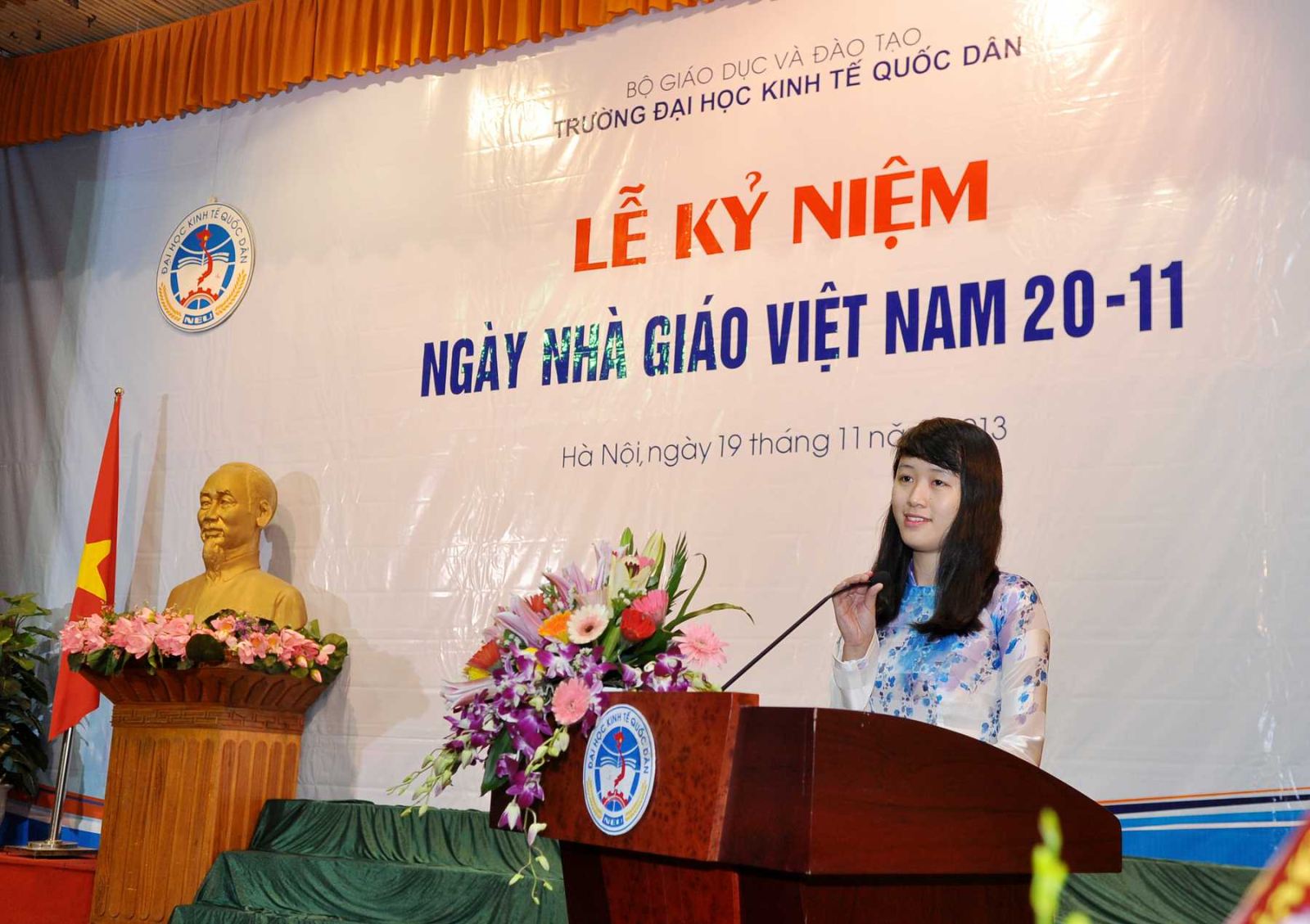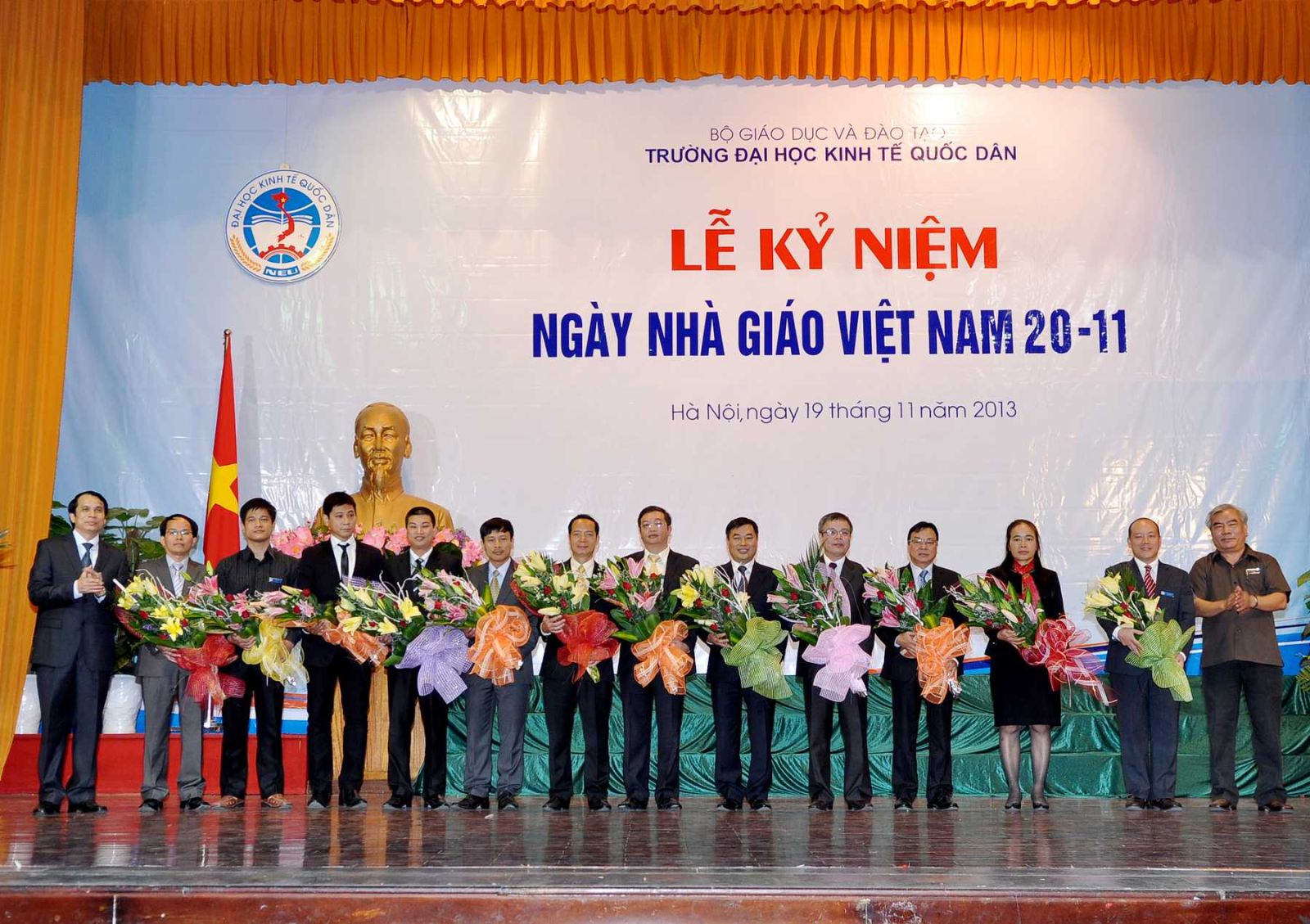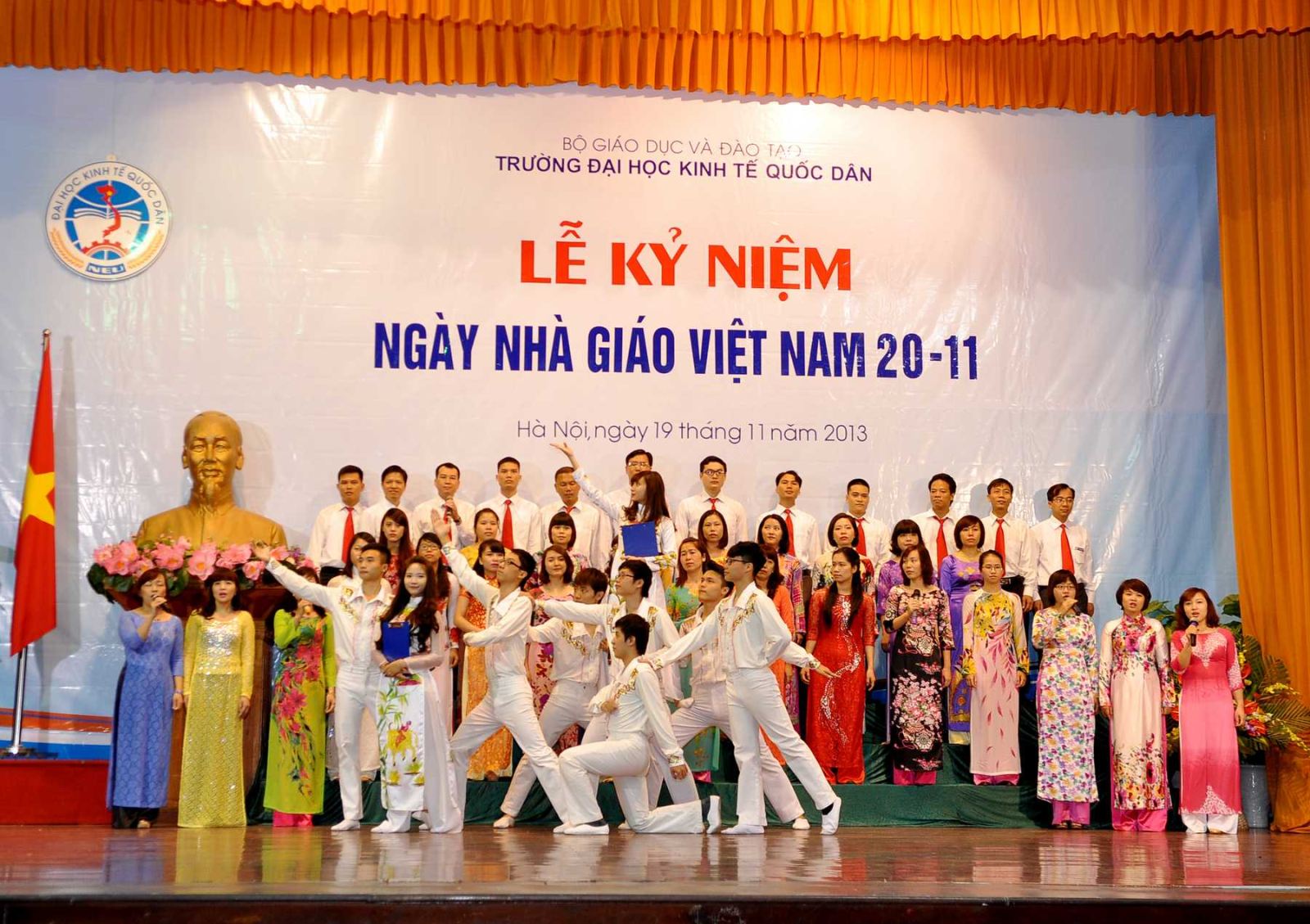 Hàng năm, khi tháng 11 đến là những ngày toàn xã hội dành nhiều tình cảm và tổ chức những hoạt động thiết thực để tôn vinh nhà giáo, những người hoạt động trong lĩnh vực giáo dục; truyền thống tốt đẹp ấy có từ ngàn xưa và nay vẫn đang tiếp tục được phát huy, tiếp nối từ thế hệ này sang thế hệ khác; và hoà chung trong không khí đó, sáng 19/11/2013, tại Hội trường A, trường Đại học kinh tế Quốc dân đã long trọng tổ chức Lễ kỷ niệm ngày nhà giáo Việt Nam 20/11.