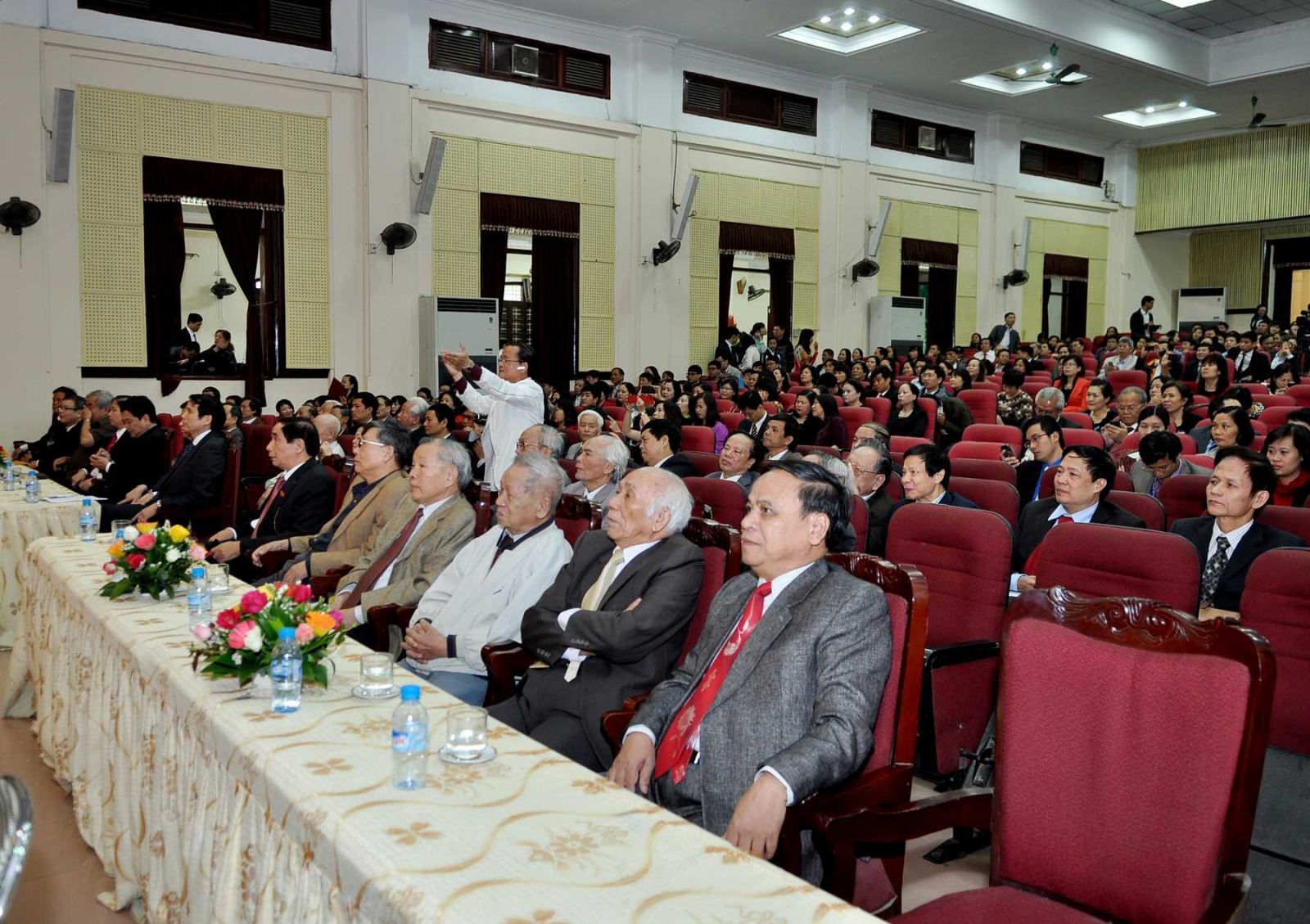 Đến dự buổi lễ, về phía đại biểu ngoài trường có Đồng chí Nguyễn Long Hải – Bí thư Ban chấp hành TW Đoàn TNCSHCM. Các Nhà giáo nguyên là Hiệu trưởng qua các thời kỳ: GS. Mai Hữu Khuê, GS.TSKH. NGND Lương Xuân Quỳ, GS.TS.NGND Nguyễn Đình Hương, GS.TSKH.NGND.Lê Du Phong ( Quyền Hiệu trưởng). Nguyên các Bí thư Đảng ủy trường có: PGS.TS.NGƯT Ngô Đức Cát, PGS.TS.NGƯT Trần Hậu Thự, Nhà giáo Đinh Thiện Đạo; GS.TS.NGƯT Nguyễn Đình Phan, GS.TS.NGƯT Nguyễn Thành Độ, cùng một số cán bộ chủ chốt đã nghỉ hưu, các NGND, NGUT nhiều thế hệ của Nhà trường. Ban lãnh đạo đương nhiệm có PGS.TS. Phạm Mạnh Hùng  – Thứ trưởng Bộ Giáo dục và Đào tạo kiêm Bí thư Đảng uỷ, Hiệu trưởng cùng đông đảo các đồng chí trong Đảng uỷ, Ban Giám hiệu, Công đoàn, Đoàn thanh niên, đại diện lãnh đạo các tổ chức chính trị – xã hội của nhà trường, các thầy cô giáo, cán bộ công nhân viên, sinh viên nhà trường.
