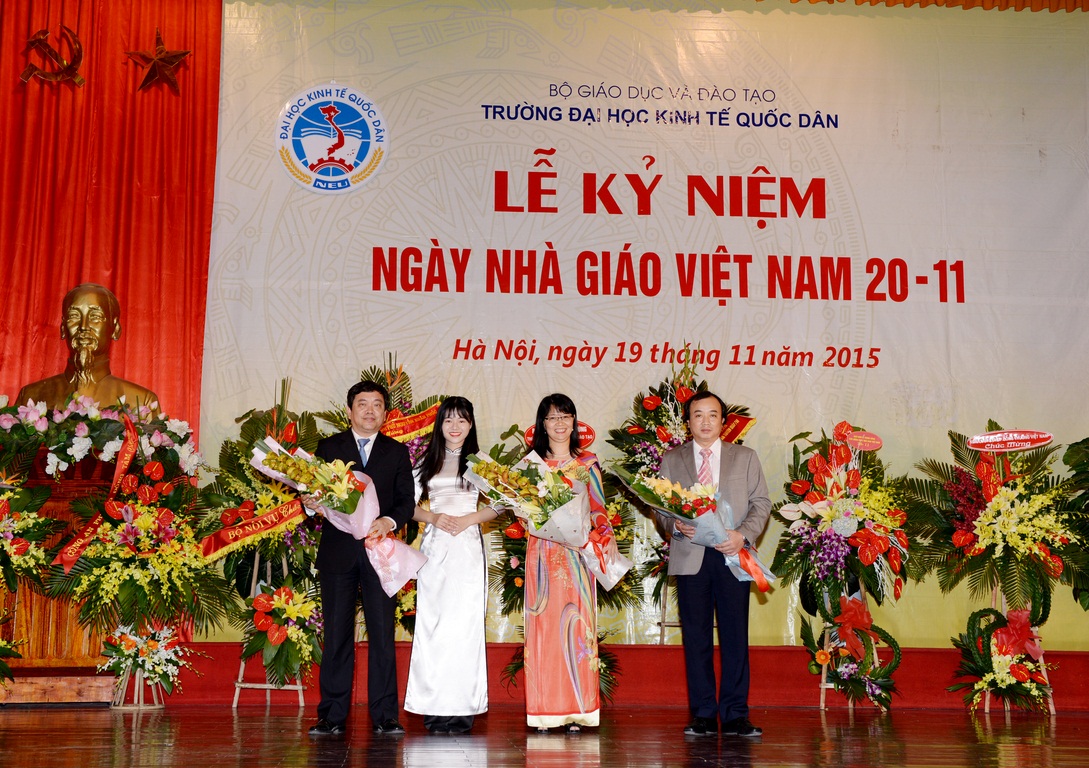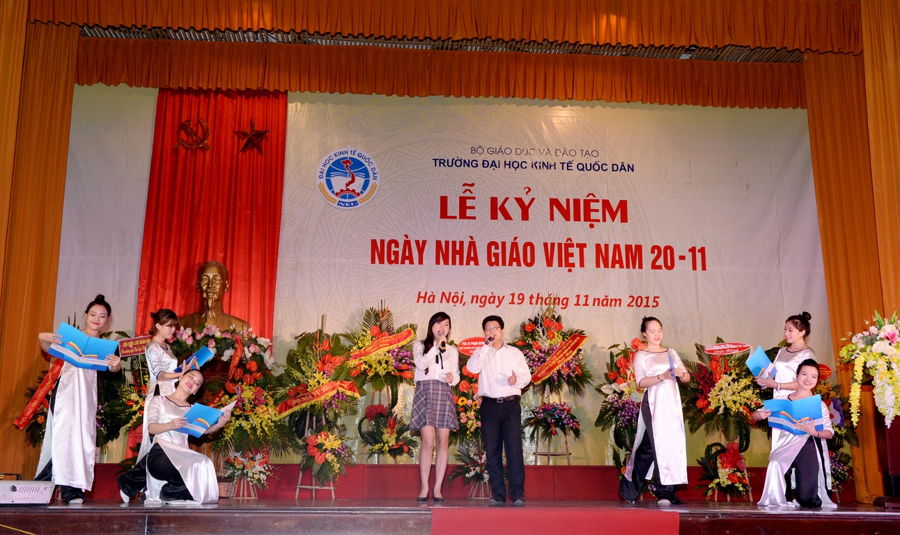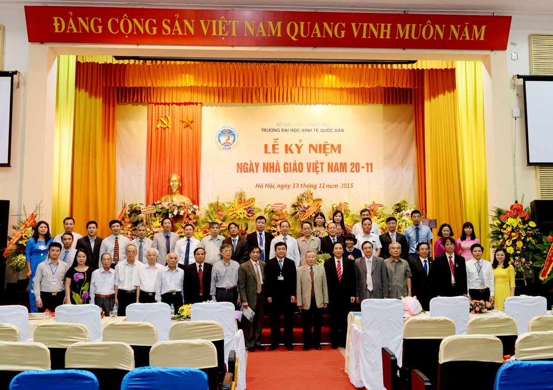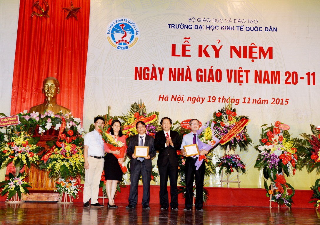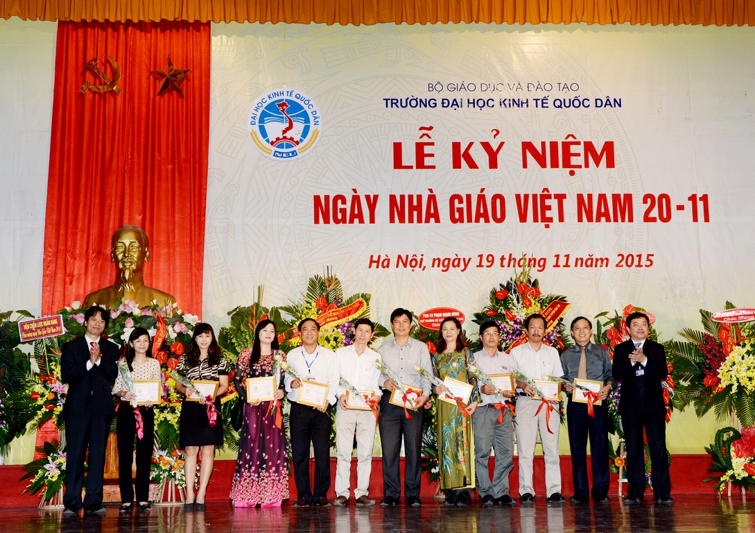 Hòa với niềm vui chung của các thế hệ Thầy và trò trên cả nước, sáng ngày 19/11/2015, tại Hội trường A – Nhà văn hóa, Trường Đại học Kinh tế quốc dân (ĐH KTQD) đã long trọng tổ chức Lễ kỷ niệm Ngày nhà giáo Việt Nam. Tại Lễ kỷ niệm, 02 nhà giáo đã được Chủ tịch nước tặng thưởng Huân chương Lao động hạng Ba; 03 nhà giáo đã được Bộ trưởng Bộ Văn hóa, Thể thao và Du lịch trao tặng Kỷ niệm chương Vì sự nghiệp Văn hóa, Thể thao và Du lịch; 26 nhà giáo được Bộ trưởng Bộ GD&ĐT tặng Kỷ niệm chương Vì sự nghiệp giáo dục; cùng nhiều tập thể và cá nhân có thành tích xuất sắc trong năm học 2013-2014 được Bộ GD&ĐT khen thưởng và công nhận danh hiệu thi đua.