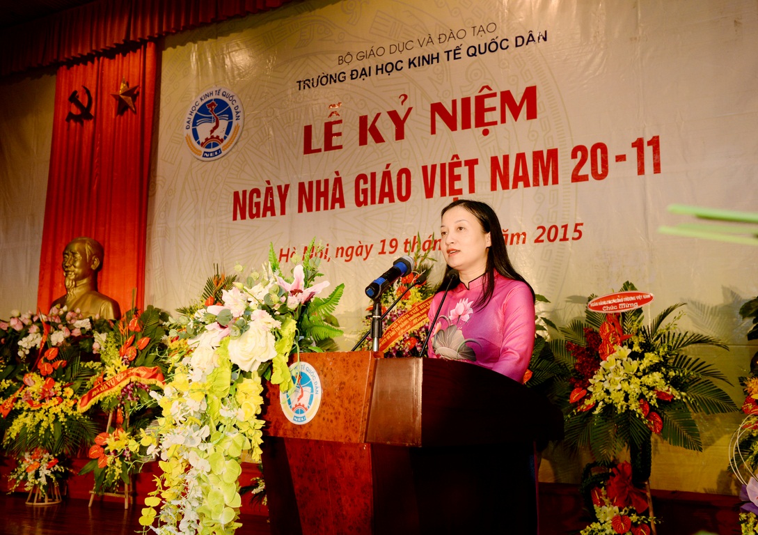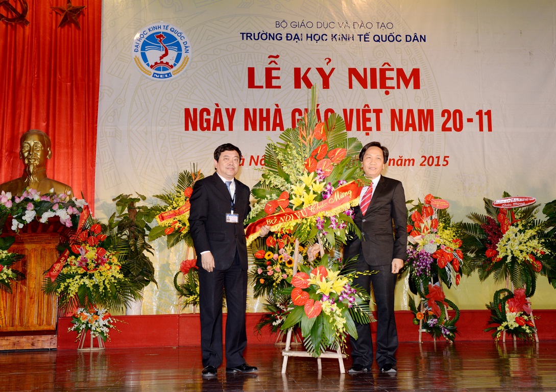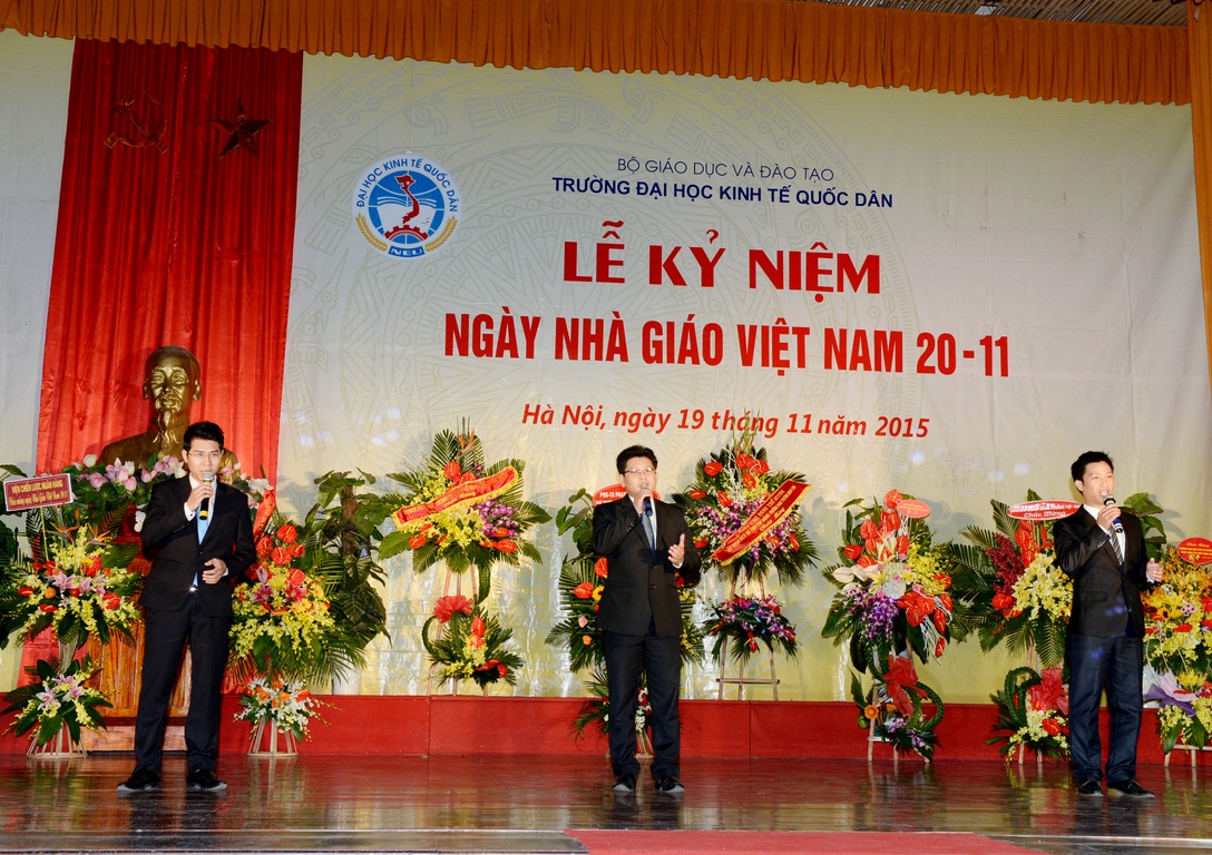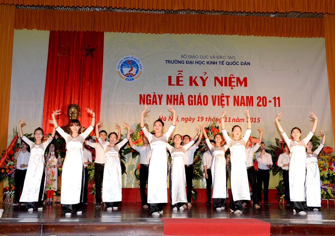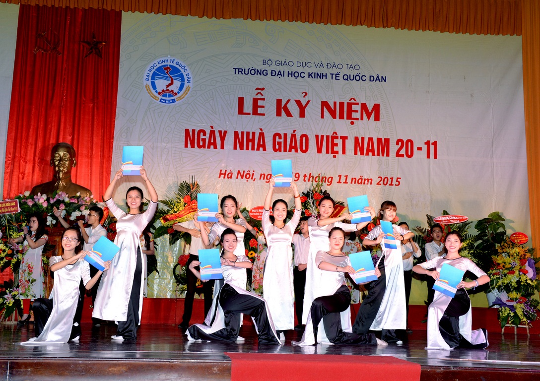 Hòa với niềm vui chung của các thế hệ Thầy và trò trên cả nước, sáng ngày 19/11/2015, tại Hội trường A – Nhà văn hóa, Trường Đại học Kinh tế quốc dân (ĐH KTQD) đã long trọng tổ chức Lễ kỷ niệm Ngày nhà giáo Việt Nam. Tại Lễ kỷ niệm, 02 nhà giáo đã được Chủ tịch nước tặng thưởng Huân chương Lao động hạng Ba; 03 nhà giáo đã được Bộ trưởng Bộ Văn hóa, Thể thao và Du lịch trao tặng Kỷ niệm chương Vì sự nghiệp Văn hóa, Thể thao và Du lịch; 26 nhà giáo được Bộ trưởng Bộ GD&ĐT tặng Kỷ niệm chương Vì sự nghiệp giáo dục; cùng nhiều tập thể và cá nhân có thành tích xuất sắc trong năm học 2013-2014 được Bộ GD&ĐT khen thưởng và công nhận danh hiệu thi đua.