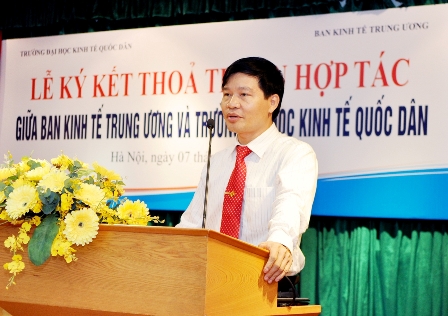 Phát biểu tại buổi lễ, TS. Bùi Văn Thạch – Phó trưởng ban, Chủ tịch Hội đồng khoa học Ban kinh tế Trung ương đã đánh giá cao sự chuẩn bị và tinh thần hợp tác của trường Đại học Kinh tế Quốc dân và cho rằng buổi lễ ký kết này là thành quả quan trọng cho quá trình hợp tác có ý nghĩa, nhằm khai thác, phát huy thế mạnh giữa 2 bên để phục vụ công tác tham mưu cho Bộ Chính trị và Ban Bí thư, từ đó sẽ đưa ra các quyết sách lớn cho đất nước. Vì ý nghĩa to lớn đó nên cả Trường Đại học Kinh tế Quốc dân và Ban Kinh tế Trung ương phải cùng chia sẻ và phối hợp chặt chẽ để thực hiện tốt các nhiệm vụ.