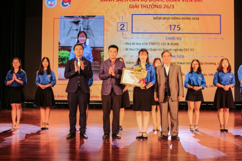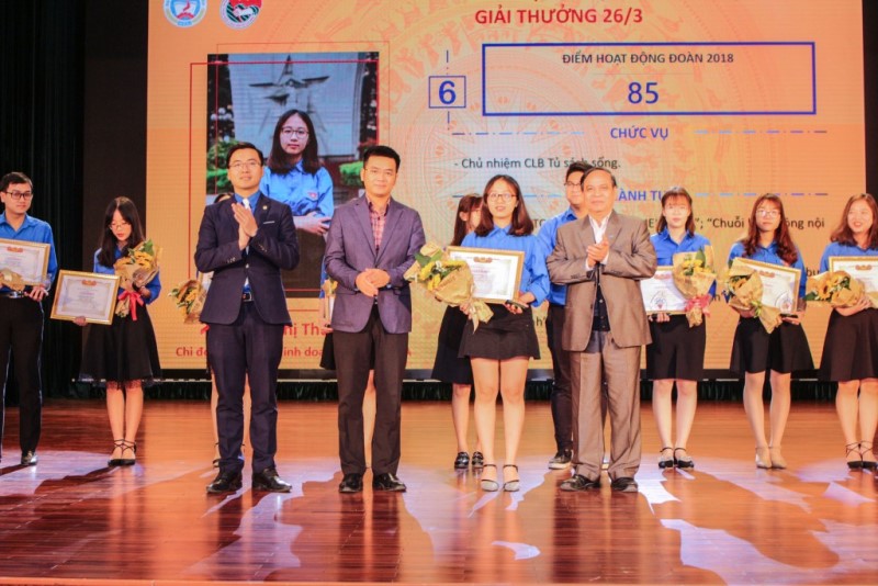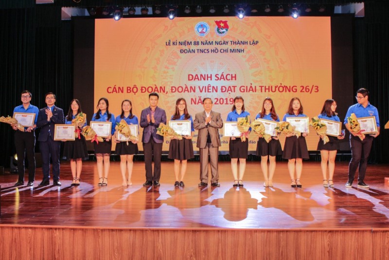 Cùng trong buổi sáng 23/03, Đoàn Thanh niên nhà trường tổ chức Lễ Kỷ niệm 88 năm ngày thành lập Đoàn TNCS Hồ Chí Minh và trao giải thưởng 26/03 – Vinh danh cán bộ đoàn, giải thưởng Bí thư Chi đoàn giỏi cho Cán bộ Đoàn, Bí thư Chi đoàn xuất sắc.
