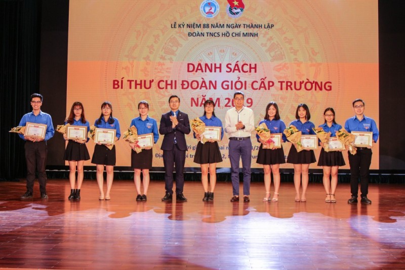 10 bạn sinh viên vinh dự nhận giải thưởng Bí thư Chi đoàn giỏi cấp trường: Kim Ngân – Tiếng Anh thương mai 58; Nguyễn Kim Ngân – Quản trị Kinh doanh Quốc tế58A; Phạm Hải Quỳnh – Bảo hiểm xã hội 58; Đậu Thị Thảo Chi – Tài chính doanh nghiệp 59B; Nguyễn Thị Thu Huệ – Tiếng Anh thương mại 58A; Ngô Thùy Dương -Quản trị Du lịch 59; Nguyễn Thu Thủy – E-BBA 9C; Trần Thị Thu Hà – Quản trị khách sạn 59; Nguyễn Sơn Hải – Kế toán CFAB1; Đoàn Vĩnh Khải – Tài chính Tiên tiến 57A.