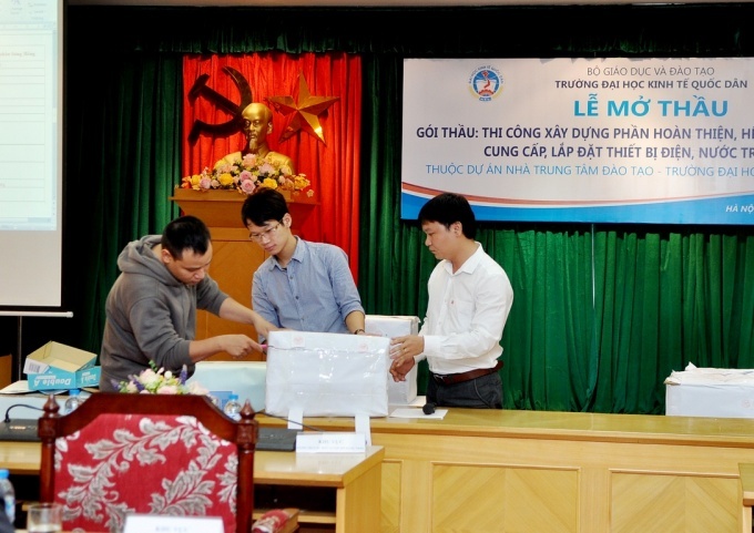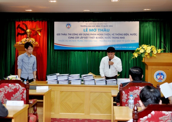 Được sự đồng ý của Bộ Giáo dục và Đào tạo, sáng ngày 25/11/2014, tại G2. N10, trường Đại học Kinh tế quốc dân đã diễn ra lễ mở thầu Gói thầu: “Thi công xây dựng phần hoàn thiện hệ thống điện nước, cung cấp, lắp đặt thiết bị điện nước trong nhà”, đây là 01 trong số các gói thầu còn lại của Nhà trung tâm Đào tạo trường Đại học Kinh tế quốc dân.