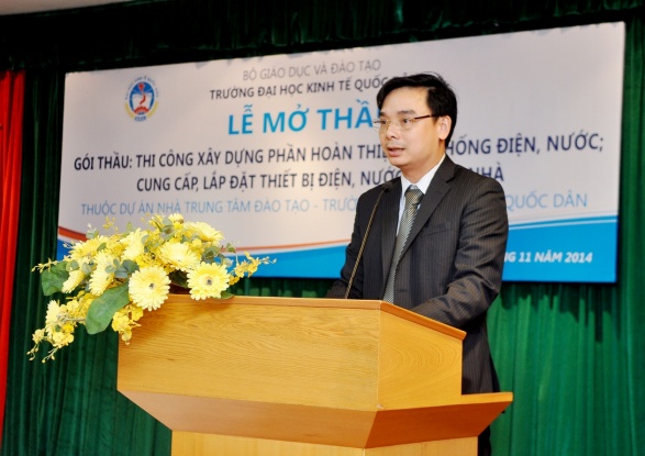 Thay mặt cho Nhà trường, GS.TS Trần Thọ Đạt đã phát biểu, gửi lời cảm ơn tới các nhà thầu đã quan tâm tới dự án của nhà trường, yêu cầu đơn vị tư vấn  làm việc khẩn trương, khách quan, đúng quy định của pháp luật để giúp nhà trường lựa chọn nhà thầu tốt nhất với tiêu chí đảm bảo chất lượng, đúng tiến độ, đúng thiết kế. Song song với việc triển khai thực hiện gói thầu này, Nhà trường tiếp tục triển khai các gói thầu còn lại của dự án. Việc Nhà trung tâm Đào tạo đưa vào sử dụng sẽ góp phần nâng cao vị thế của Nhà trường, khẳng định Trường Đại học trọng điểm, hàng đầu trong lĩnh vực quản lý, kinh tế và quản trị kinh doanh.