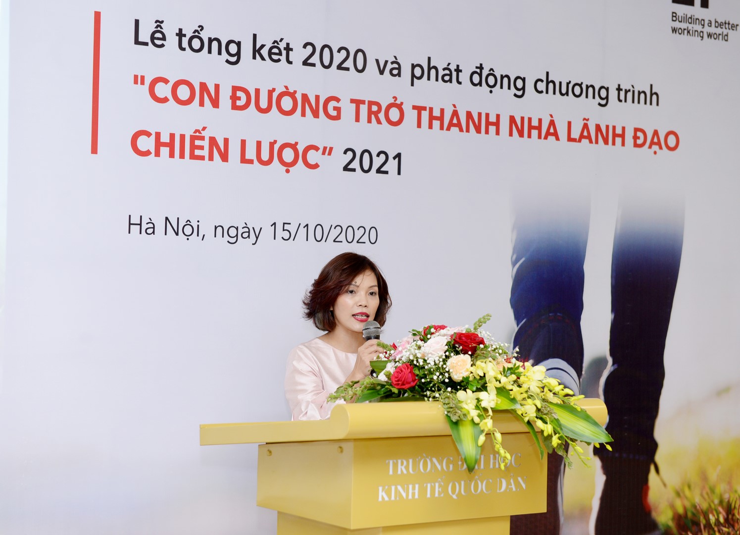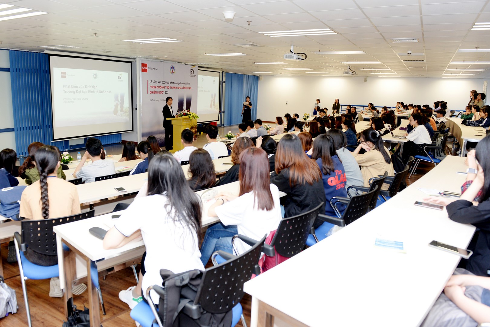 Phát biểu tại chương trình, bà Nguyễn Mai Chi – Trưởng đại diện Văn phòng ACCA Hà Nội cho biết, chương trình “Con đường trở thành nhà lãnh đạo chiến lược” được ra mắt từ năm 2018, phát triển từ cuộc thi thường niên “Pathway to Success/Đường đến thành công” do EY Việt Nam, Đại học Kinh tế Quốc dân và ACCA Việt Nam phối hợp tổ chức. Đây là cuộc thi dành riêng cho các bạn sinh viên của Đại học Kinh tế Quốc dân với mong muốn tiếp động lực, định hình và nuôi dưỡng các tài năng trẻ của Đại học Kinh tế Quốc dân trở thành các Nhà lãnh đạo chiến lược trong tương lai. “Thông qua cuộc thi, tôi hy vọng các bạn sinh viên của Đại học Kinh tế Quốc dân sẽ phát huy tối đa năng lực của bản thân, đồng thời trau dồi các kỹ năng nghề nghiệp cần thiết để đáp ứng với các yêu cầu mới của thị trường lao động hiện nay” – Bà Nguyễn Mai Chi nhấn mạnh.