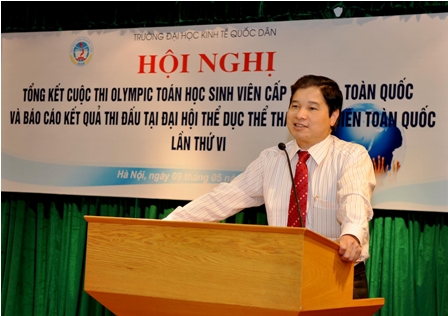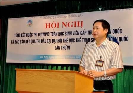 Mở đầu chương trình, TS.Lê Anh Tuấn – Trưởng phòng CTCT & QLSV  đọc báo cáo tổng kết cuộc thi Olympic toán học sinh viên và các giải thể thao. Báo cáo đã nêu bật và đánh giá cao những nỗ lực, những thành tích mà các em sinh viên đã đạt được. Năm nay, đội tuyển Olympic nhà trường đạt được thành tích xuất sắc trong cuộc thi Olympic Toán học sinh viên toàn quốc lần thứ XX . Tham gia đội tuyển có 9 sinh viên và các em đã xuất sắc giành được 11 giải thưởng, trong đó có giải thủ khoa – giải lần đầu tiên trường Đại học Kinh tế Quốc dân giành được. Trong Đại hội thể dục thể thao sinh viên toàn quốc lần thứ VI, đội tuyển nhà trường đã giành được 2 Huy chương đồng đồng đội môn Bóng rổ và Bóng bàn nữ, 1 Huy chương đồng đồng đội môn Bóng bàn đơn Nam, 2 Huy chương đồng môn Bóng bàn đôi Nam/Nữ.