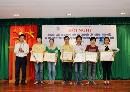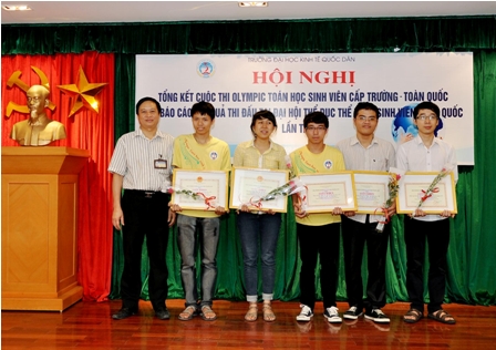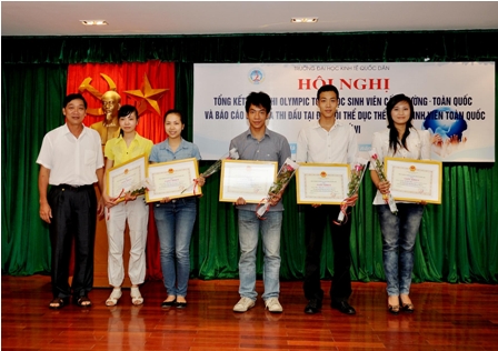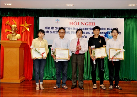 Nhằm tôn vinh những sinh viên có thành tích cao trong các hoạt động năng khiếu, thể dục thể thao, chiều 09/5/2012, tại phòng họp G2 nhà 10, trường ĐHKTQD đã tổ chức Lễ tổng kết và trao giải thưởng cho các sinh viên đạt giải trong cuộc thi Olympic toán sinh viên năm 2012 và sinh viên đạt kết quả thi đấu tại đại hội thể thao sinh viên toàn quốc lần thứ VI.