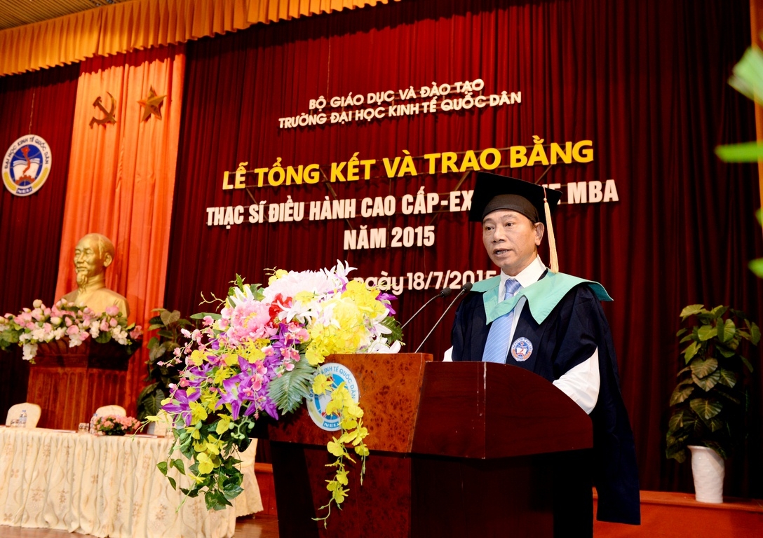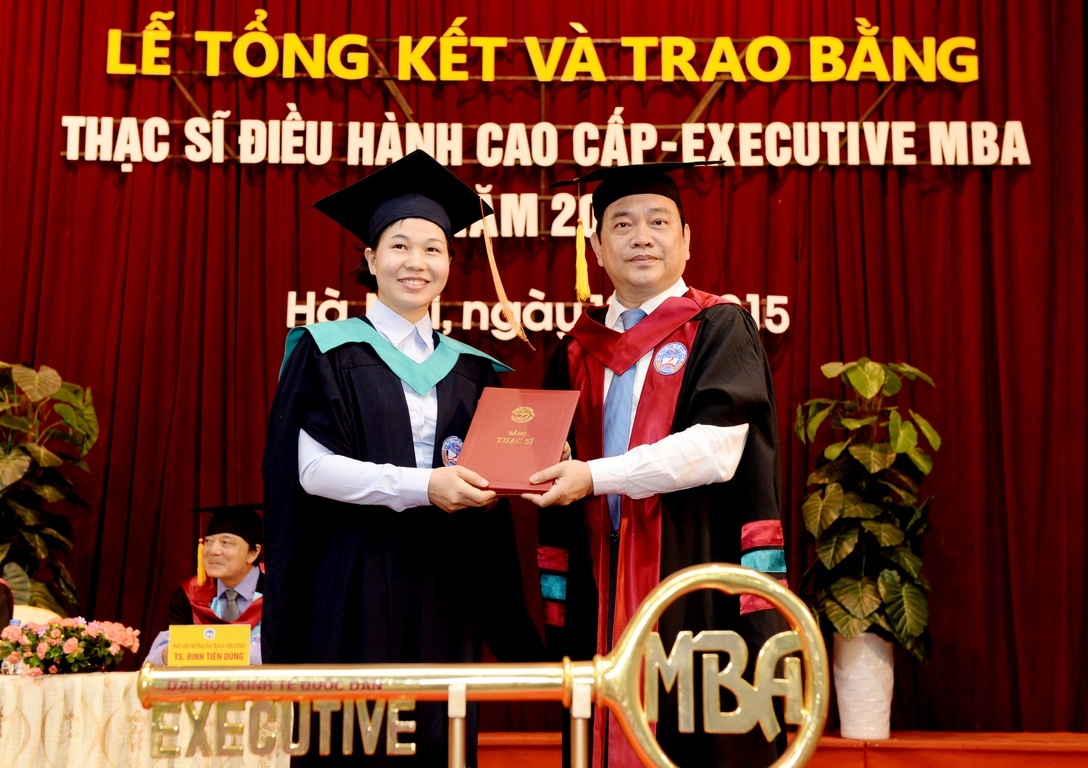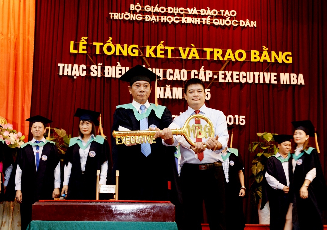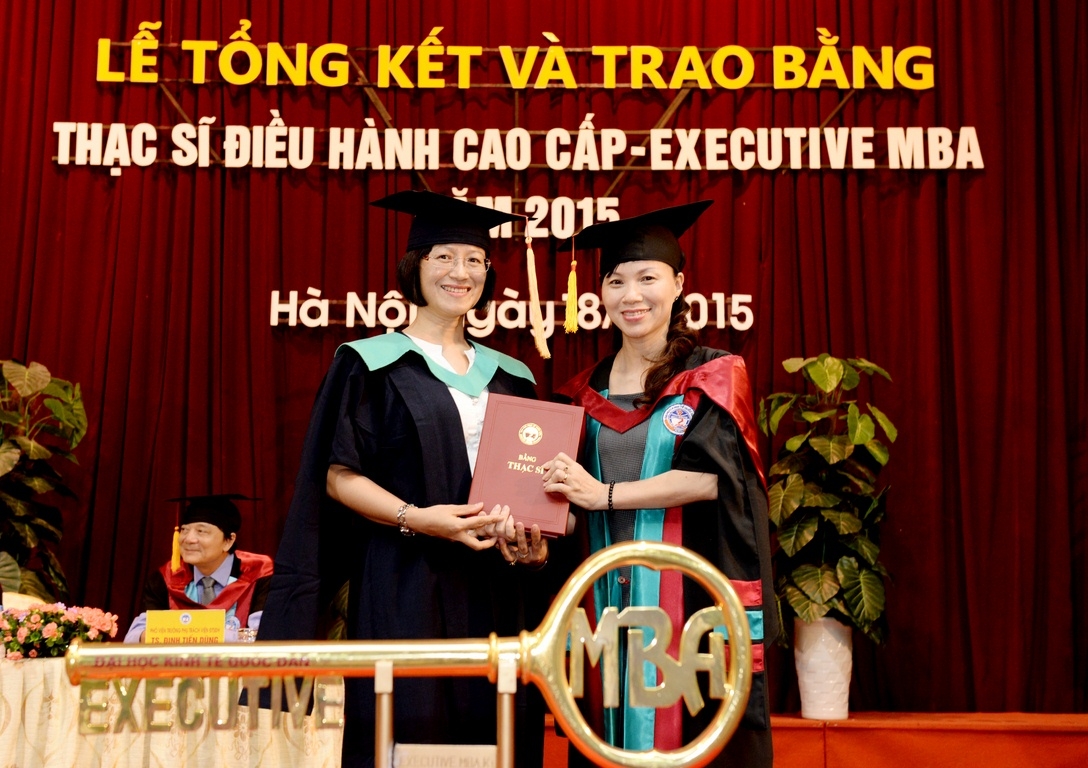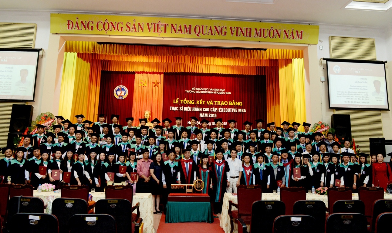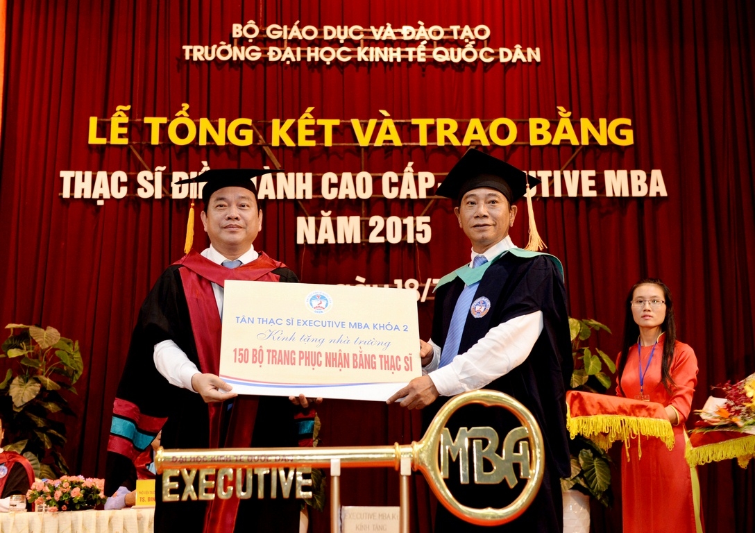Sáng 18 tháng 7 năm 2015, tại Hội trường A, trường Đại học Kinh tế Quốc dân đã long trọng tổ chức Lễ tổng kết và trao bằng tốt nghiệp cho 126 thạc sĩ khóa 2 của chương trình đào tạo thạc sĩ Điều hành cao cấp – EXECUTIVE MBA. Đến dự buổi lễ và trao bằng cho các tân thạc sĩ, về phía các vị khách ngoài trường có TS. Nguyễn Thị Kim Phụng – Q.Vụ trưởng Vụ Giáo dục Đại học – Bộ GDĐT; Bà Nguyễn Thị Nga – Phó Vụ trưởng Vụ TCCB – Bộ Xây dựng. Về phía trường Đại học Kinh tế Quốc dân có GS.TS Trần Thọ Đạt – Hiệu trưởng, Bí thư Đảng ủy; PGS.TS Hoàng Văn Cường – Phó Hiệu trưởng; GS.TS Phan Công Nghĩa – Chủ tịch HĐKHĐT; GS.TS Nguyễn Quang Dong – Trưởng phòng QLĐT; TS. Đinh Tiến Dũng – Phó Viện trưởng phụ trách Viện ĐTSĐH, PGS.TS Trương Đoàn Thể – Phó Viện trưởng Viện ĐTSĐH cùng đại diện lãnh đạo các phòng, ban, khoa bộ môn, viện, trung tâm, các thầy cô giáo, các tân thạc sĩ, người thân, bạn bè, các hãng thông tấn báo chí trung ương và Hà Nội đến dự và đưa tin.