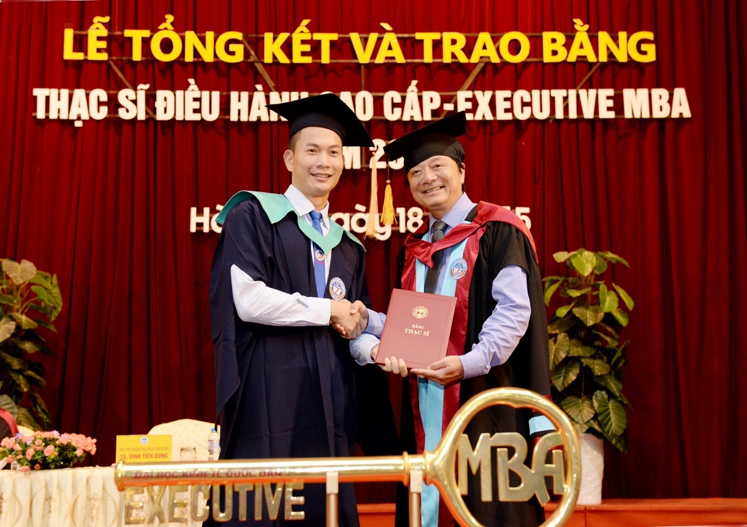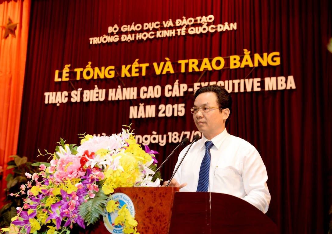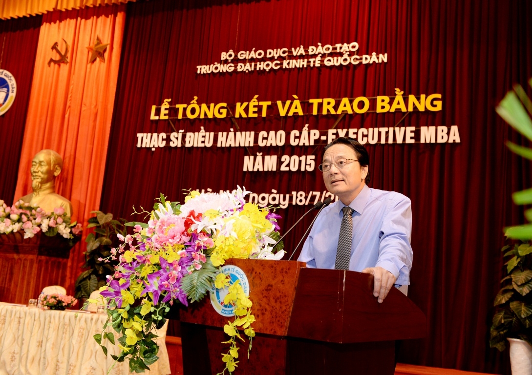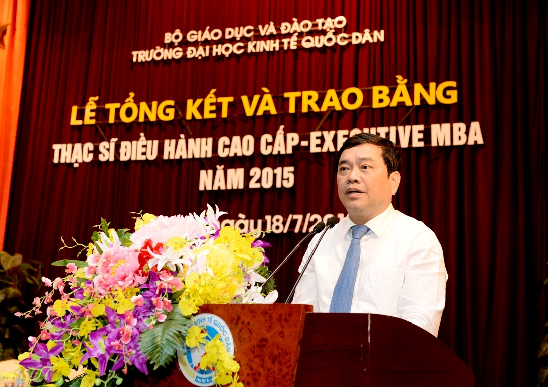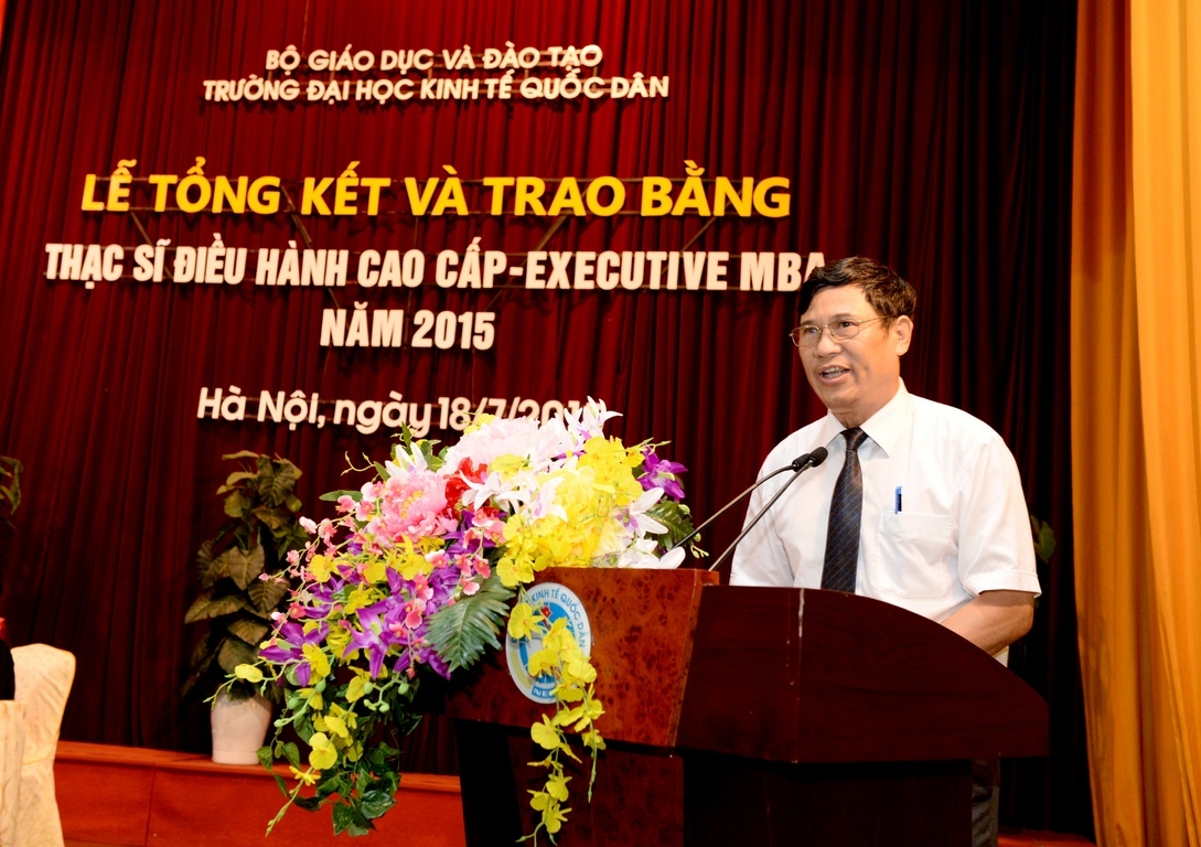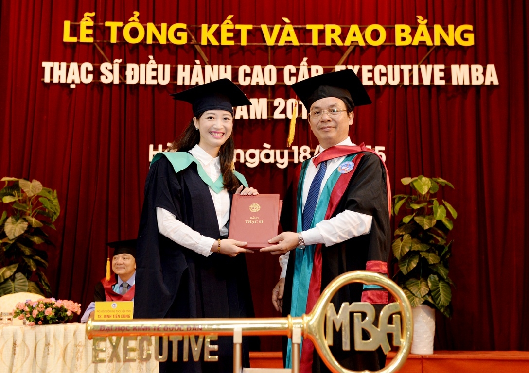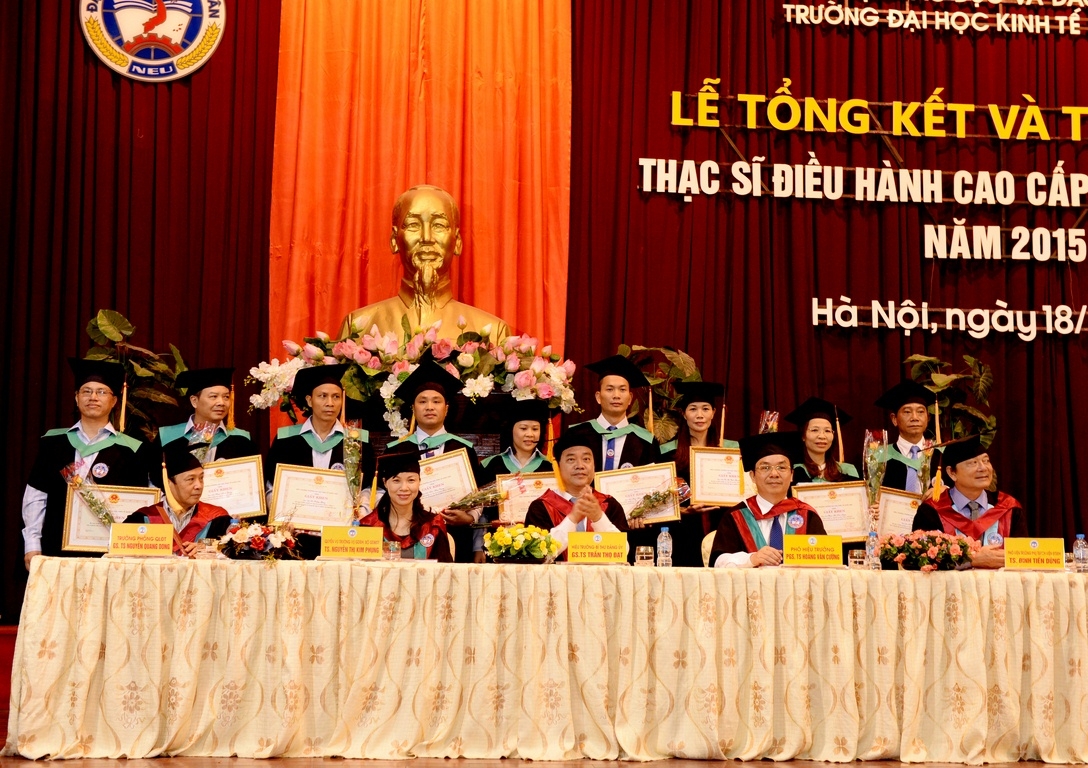 Sáng 18 tháng 7 năm 2015, tại Hội trường A, trường Đại học Kinh tế Quốc dân đã long trọng tổ chức Lễ tổng kết và trao bằng tốt nghiệp cho 126 thạc sĩ khóa 2 của chương trình đào tạo thạc sĩ Điều hành cao cấp – EXECUTIVE MBA. Đến dự buổi lễ và trao bằng cho các tân thạc sĩ, về phía các vị khách ngoài trường có TS. Nguyễn Thị Kim Phụng – Q.Vụ trưởng Vụ Giáo dục Đại học – Bộ GDĐT; Bà Nguyễn Thị Nga – Phó Vụ trưởng Vụ TCCB – Bộ Xây dựng. Về phía trường Đại học Kinh tế Quốc dân có GS.TS Trần Thọ Đạt – Hiệu trưởng, Bí thư Đảng ủy; PGS.TS Hoàng Văn Cường – Phó Hiệu trưởng; GS.TS Phan Công Nghĩa – Chủ tịch HĐKHĐT; GS.TS Nguyễn Quang Dong – Trưởng phòng QLĐT; TS. Đinh Tiến Dũng – Phó Viện trưởng phụ trách Viện ĐTSĐH, PGS.TS Trương Đoàn Thể – Phó Viện trưởng Viện ĐTSĐH cùng đại diện lãnh đạo các phòng, ban, khoa bộ môn, viện, trung tâm, các thầy cô giáo, các tân thạc sĩ, người thân, bạn bè, các hãng thông tấn báo chí trung ương và Hà Nội đến dự và đưa tin.