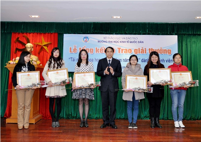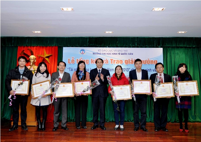Vừa qua, trường Đại học Kinh tế Quốc dân phối hợp với Đoàn Thanh niên Cộng sản Hồ Chí Minh tổ chức Lễ trao Giải thưởng “Tài năng khoa học trẻ Việt Nam” năm 2013 dành cho sinh viên nhà trường. Lễ trao giải được tổ chức long trọng và tôn vinh được những tập thể và cá nhân đã có những thành tích xuất sắc, đạt kết quả cao của cuộc thi.