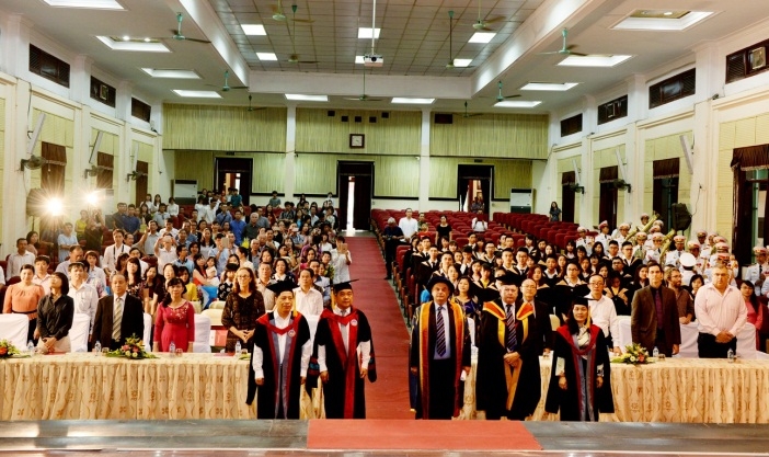 Các đại biểu, thầy cô giáo và các tân cử nhân Khóa 7