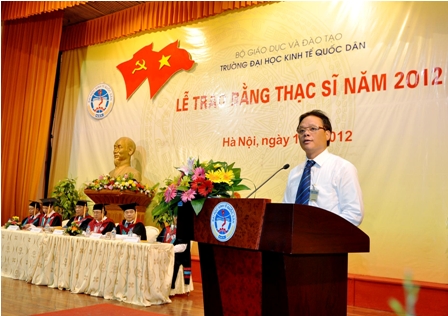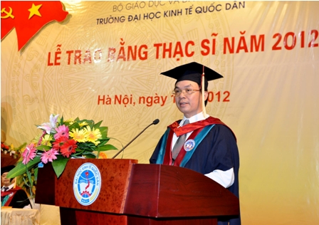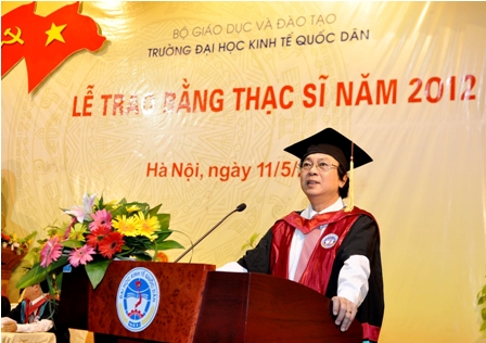 Phát biểu tại buổi lễ, GS.TS. Nguyễn Văn Nam – Hiệu trưởng nhiệt liệt chúc mừng thành công của các tân thạc sĩ và mong muốn rằng, các tân thạc sĩ hãy phát huy sức mạnh trí tuệ, vận dụng những kiến thức đã được học tập ở trong trường vào thực tế cuộc sống, làm cho quê hương đất nước ngày một giầu đẹp và đó cũng chính là góp phần đưa hình ảnh trường Đại học Kinh tế quốc dân ngày càng được ghi nhận cả ở trong nước và quốc tế.