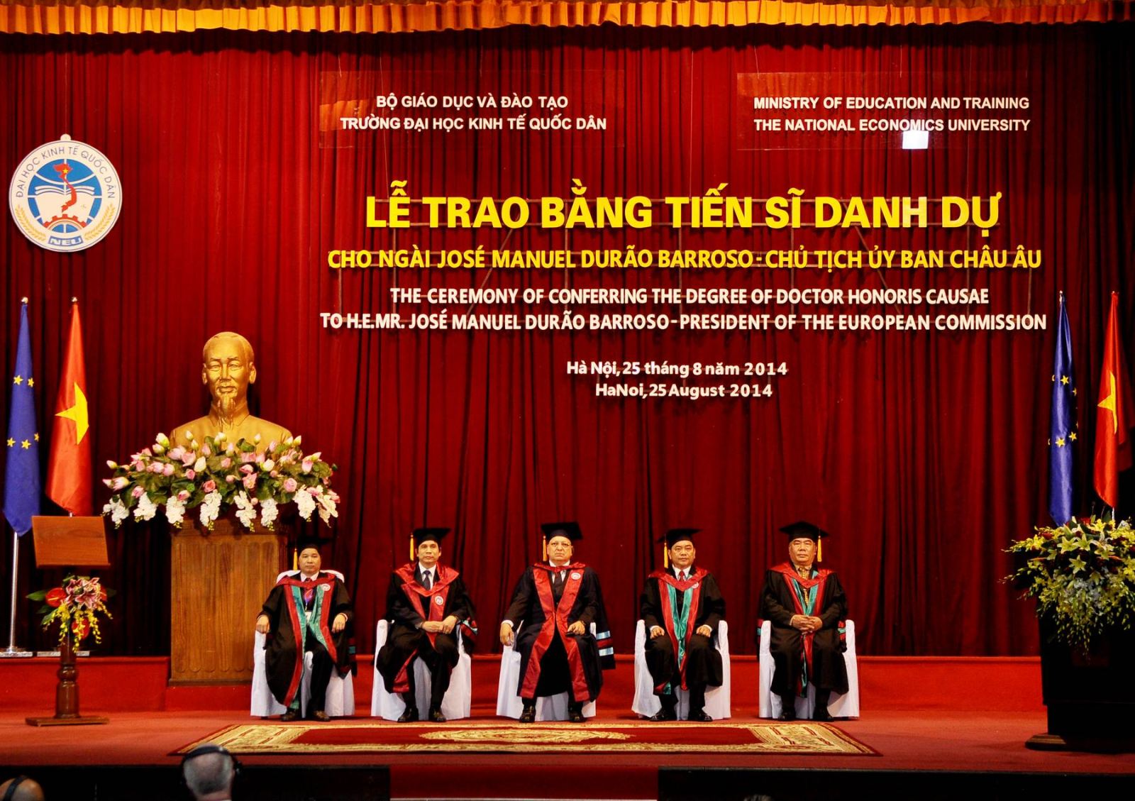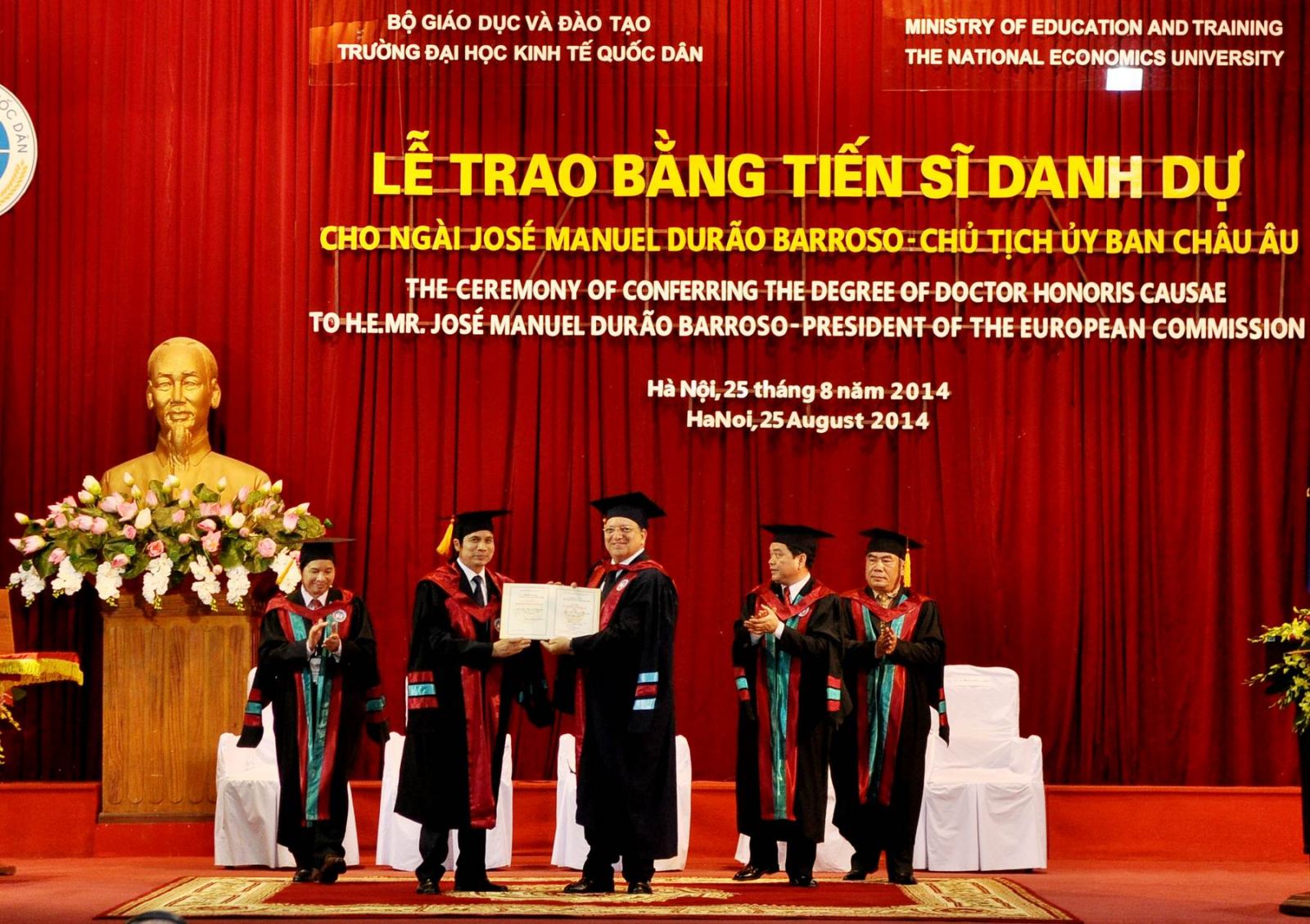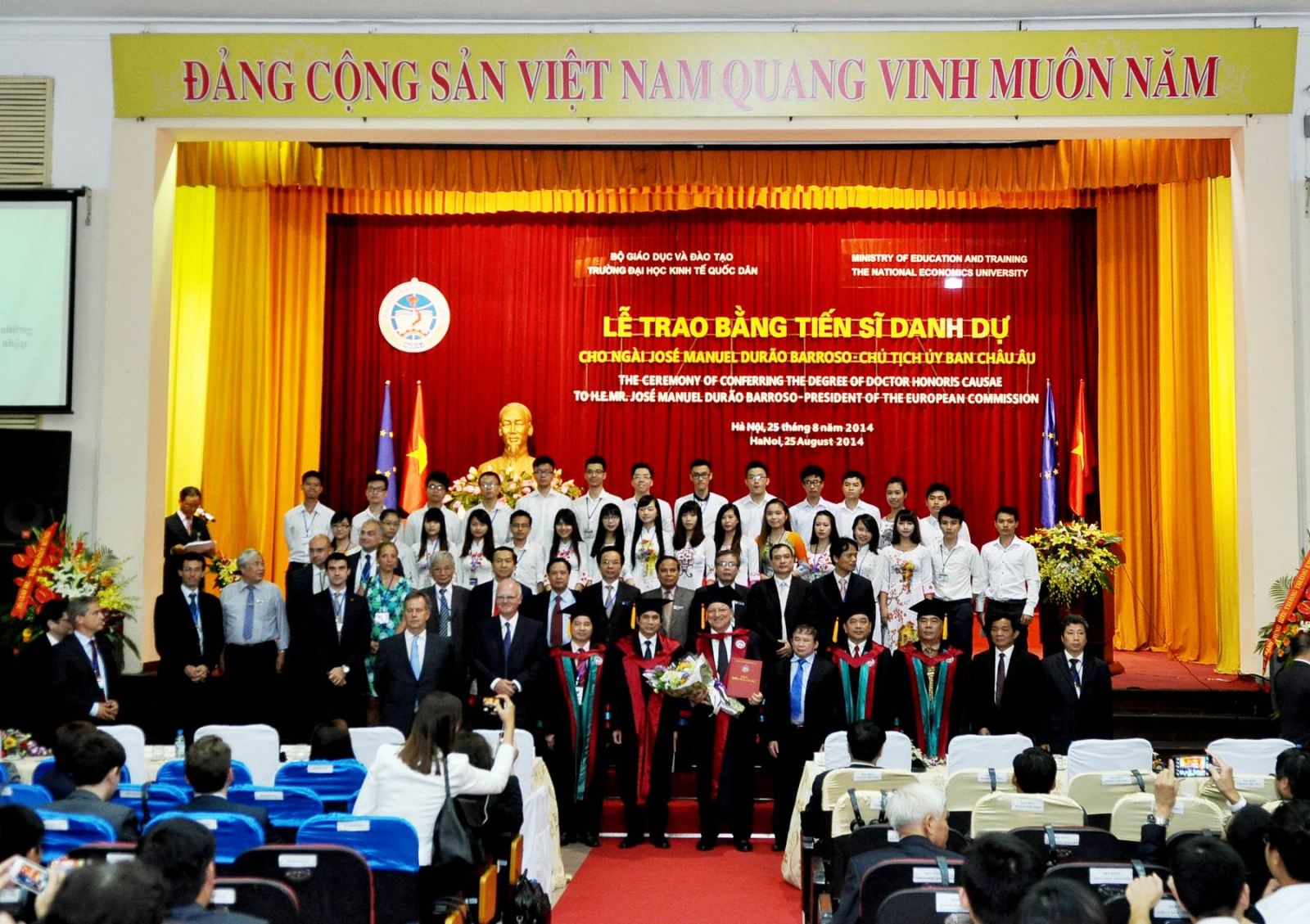 Ngày 25 tháng 8 năm 2014, tại Hội trường A, trường Đại học Kinh tế Quốc dân đón tiếp và long trọng tổ chức Lễ trao bằng Tiến sĩ danh dự cho Ngài José Manuel Durão Barroso – Chủ tịch Ủy Ban Châu Âu nhân dịp sang thăm chính thức Việt Nam.