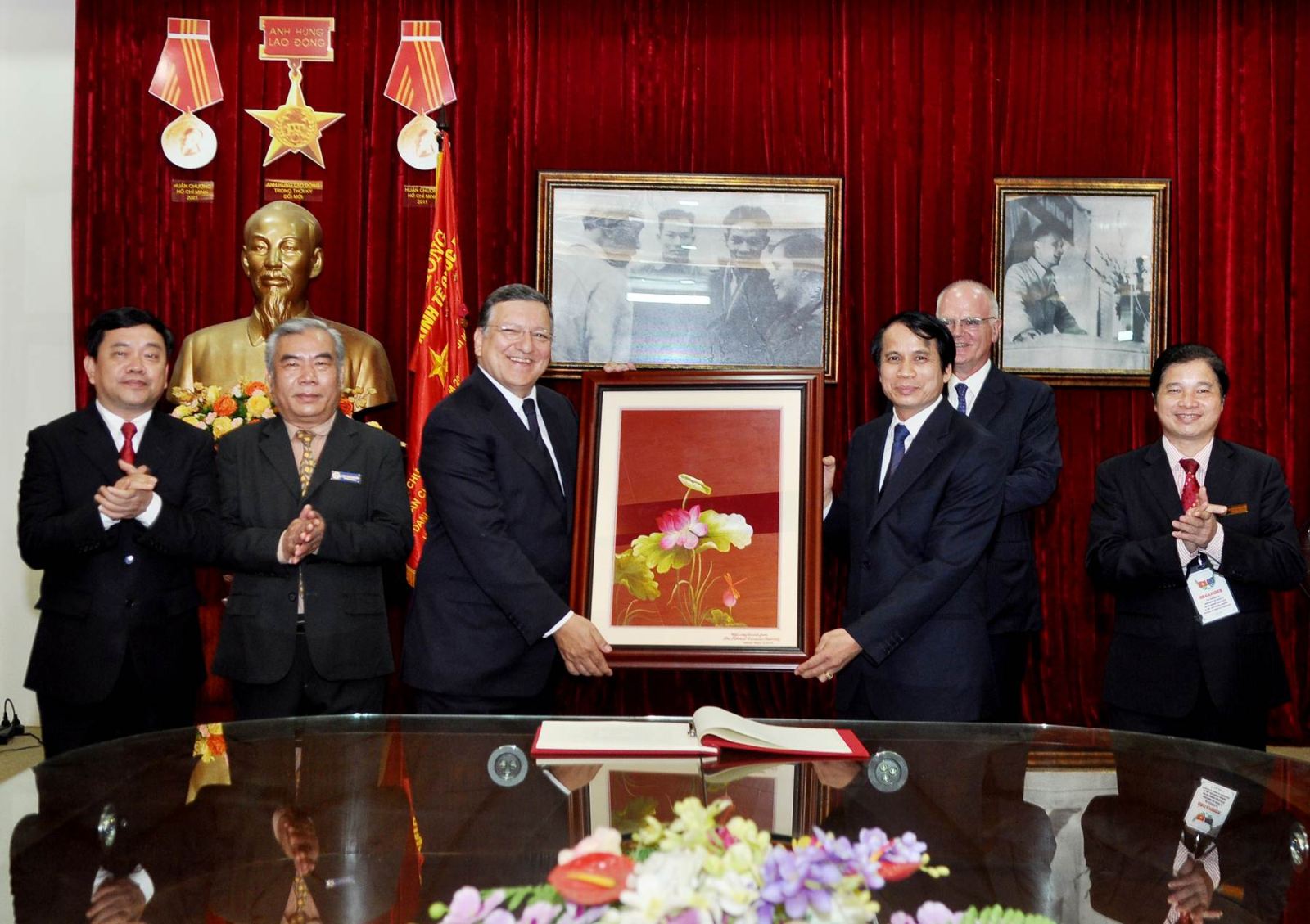 PGS.TS Phạm Mạnh Hùng trao tặng bức tranh ý nghĩa, tình cảm đặc biệt cho Ngài José Manuel Durão Barroso
