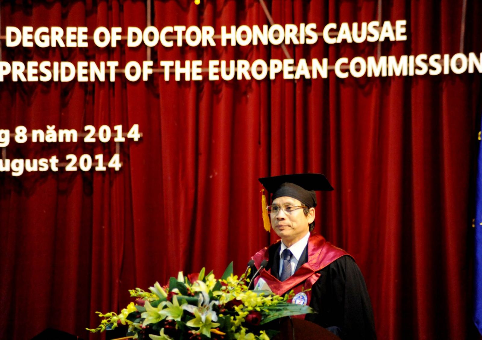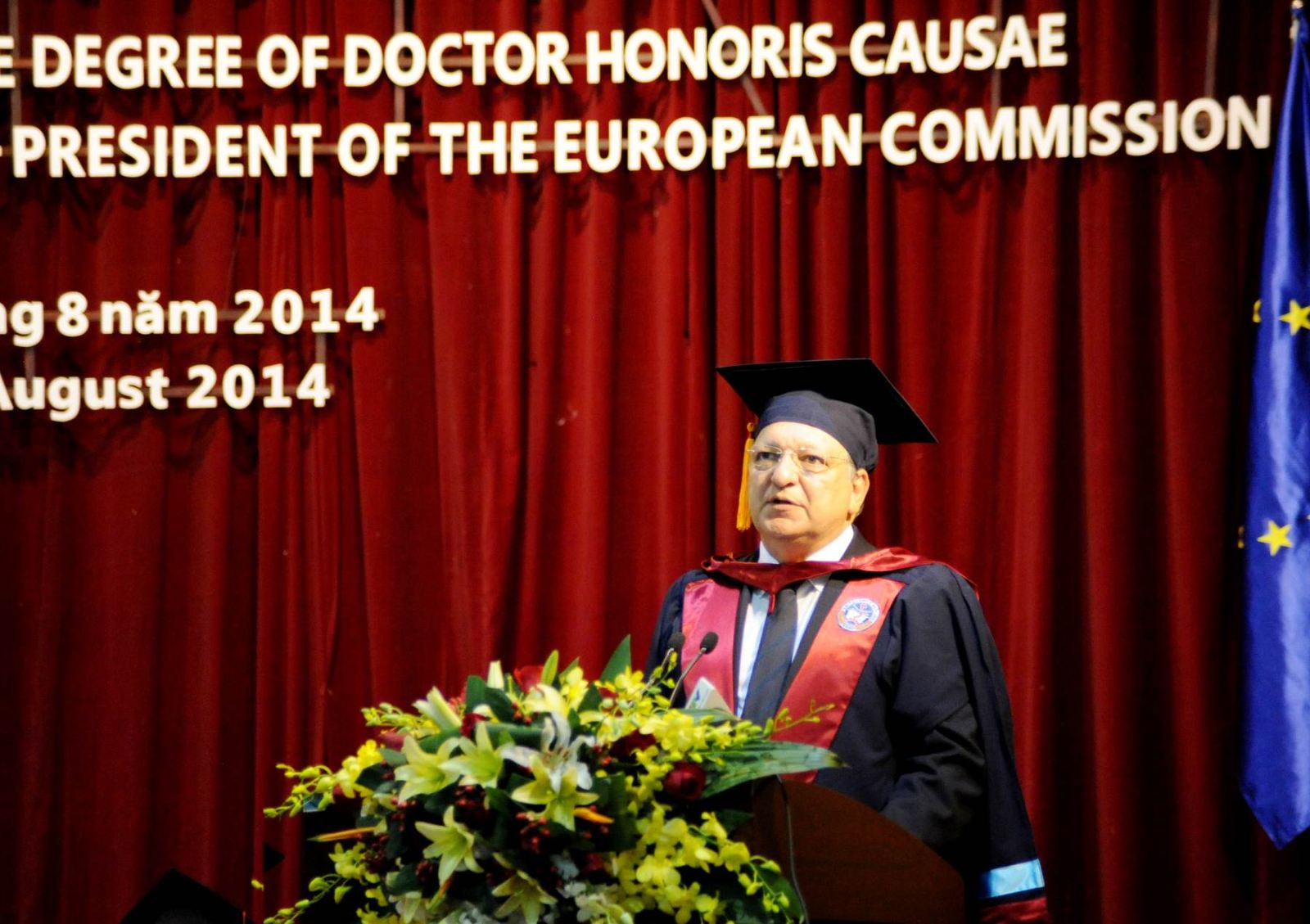 Tại buổi lễ, PGS.TS Phạm Mạnh Hùng, Thứ trưởng Bộ GD& ĐT, kiêm Bí thư Đảng ủy, Hiệu trưởng đã phát biểu, bày tỏ niềm vinh dự và vui mừng được thay mặt cho cán bộ, viên chức và sinh viên nhà trường trao tặng tấm bằng Tiến sĩ danh dự của Nhà trường cho Ngài José Manuel Durão Barroso vì những đóng góp trực tiếp, thiết thực và hiệu quả của ông đối với nhân loại nói chung và cho cộng đồng Châu Âu nói riêng.