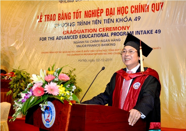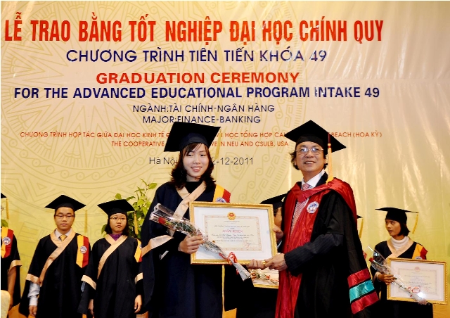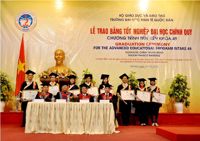 Sáng 02/12/2011, tại Hội trường A, trường Đại học Kinh tế Quốc dân đã long trọng tổ chức Lễ trao bằng cử nhân cho 64 sinh viên khoá 2 đào tạo theo Chương trình tiến tiến – chuyên ngành Tài chính – Ngân hàng.