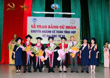 Đến dự và chia vui với các tân cử nhân có TS. Lê Trung Thành – Giám đốc Trung tâm ĐTTX, PGS.TS. Nguyễn Hữu Ánh – Phó Viện trưởng Viện Kế toán Kiểm toán, Ths. Bùi Kiên Trung – PGĐ TT ĐT Từ xa, Thầy Trương Thế Thử – Hiệu Trưởng, Thầy Nguyễn Đức Nhời – Phó Hiệu trưởng Trường Cao đẳng Nghề Kinh tế – Kỹ thuật Bắc Ninh cùng các thầy cô giáo tham gia giảng dạy, gia đình, bạn bè của các tân cử nhân.