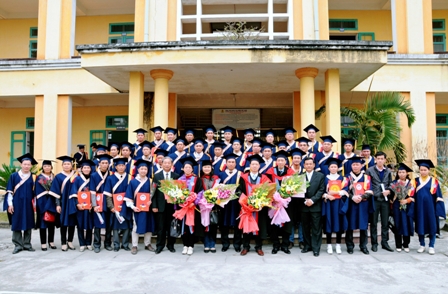 Tập thể các Tân cử nhân chụp ảnh lưu niệm với Đại biểu và Thầy Cô giáo.