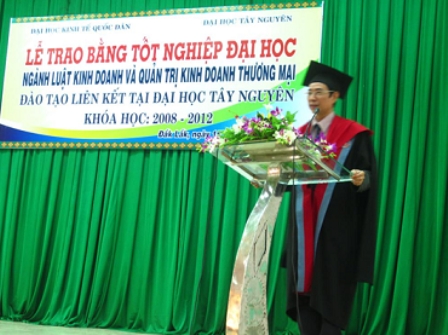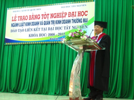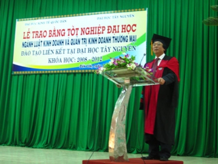 PGS.TS Trần Quang Hân, Phó Hiệu trưởng Trường Đại học Tây Nguyên đã nhiệt liệt chào mừng và nhấn mạnh về mối quan hệ thân thiết giữa hai Trường trong những chương trình đào tạo đại học và sau đại học.Theo báo cáo tổng kết khóa học, Khóa 2008 là khóa đầu tiên của chuỗi ba khóa liên kết của trường Đại học KTQD đào tạo tại Trường Đại học Tây Nguyên. Sau quá trình học tập, kết quả toàn khóa có 19 SV đạt loại giỏi (Trong đó, 17 SV Giỏi thuộc chuyên ngành Quản trị Kinh doanh thương mại; 02 SV Giỏi thuộc chuyên ngành Luật Kinh doanh); 74 Sinh viên đạt loại Khá(QTKDTM: 36 SV; Luật Kinh doanh: 38 SV); 28 SV đạt loại trung bình khá (QTKDTM 14 SV; Luật Kinh doanh 14 SV).