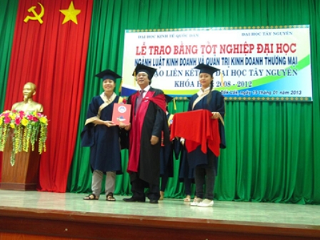 Ngày 15/01/2013, tại Trường Đại học Tây Nguyên, TP Buôn Mê Thuột (Đăklăk) Trường Đại học Kinh tế Quốc Dân Hà Nội đã tổ chức Lễ trao bằng tốt nghiệp cử nhân luật kinh doanh, cử nhân kinh tế chuyên ngành quản trị kinh doanh thương mại trong khuôn khổ liên kết đào tạo với Trường Đại học Tây Nguyên.