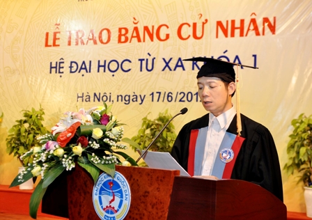 Trong niềm vui hân hoan ngày tốt nghiệp, đại diện cho các tân cử nhân – bạn Lý Mười, lớp Quản lý kinh tế đã phát biểu, gửi lời tri ân sâu sắc tới Ban lãnh đạo nhà trường, các thầy cô giáo, các cán bộ quản lý đã dạy dỗ, chỉ bảo, quan tâm giúp đỡ để các sinh viên hoàn thành tốt chương trình học và hứa dù ở đâu, trên cương vị nào, sẽ mãi nhớ về mái trường, về thầy cô, bạn bè, sẽ sống và làm việc xứng đáng là một cựu sinh viên trường Đại học Kinh tế quốc dân.