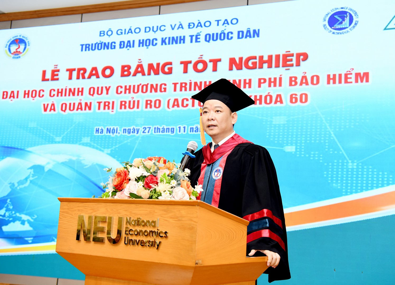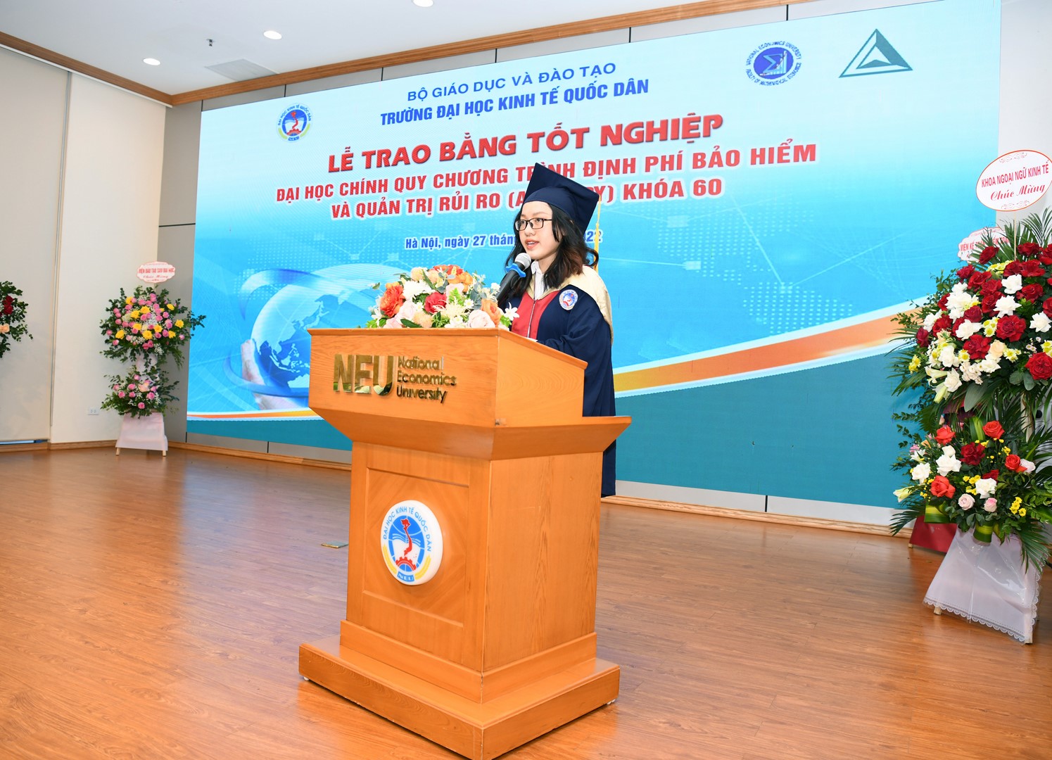 Ngày hôm nay là một ngày đặc biệt và mang lại rất nhiều cảm xúc cho các Tân cử nhân. Sau hôm nay, các em sẽ bước tiếp trên con đường mà mình đã lựa chọn, cánh cửa tương lai đang chào đón các em. Hy vọng các tân cử nhân chương trình Định phí Bảo hiểm và Quản trị rủi ro (Actuary) K60 sẽ bước vào đời với những hành trang, đó là tri thức, là vốn sống và sẽ có nhiều cống hiến cho sự nghiệp xây dựng đất nước./.