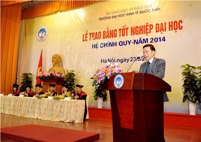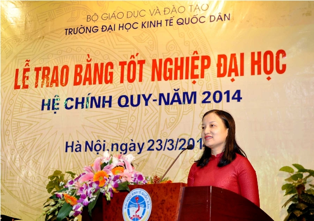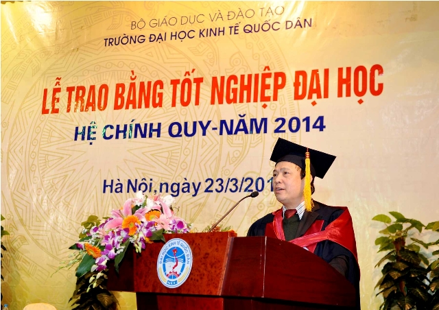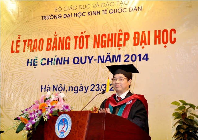 Phát biểu tại buổi lễ, GS.TS.Phạm Quang Trung  – Phó Hiệu trưởng thay mặt Ban Giám hiệu gửi lời chúc mừng các tân cử nhân sau 2 năm nỗ lực học tập và rèn luyện, những kết quả của các em đã được ghi nhận bằng tấm bằng tốt nghiệp của trường Đại học Kinh tế Quốc dân và mong muốn rằng các tân cử nhân tiếp tục học hỏi, đem hết kiến thức, kỹ năng đã có áp dụng sáng tạo vào cuộc sống, vào công việc để trở thành những cán bộ, chuyên gia, những nhà quản lý giỏi, đóng góp thật nhiều cho sự phát triển của cộng đồng, đất nước. Cùng với đó Phó Hiệu trưởng Phạm Quang Trung cũng gửi lời cảm ơn đến đơn vị quản lý, các thầy cô giáo tham gia giảng dạy đã hết lòng tận tụy, đóng góp thầm lặng nhưng rất tích cực và hiệu quả cho sự nghiệp đào tạo, cho sự phát triển của Trường Đại học Kinh tế Quốc dân.